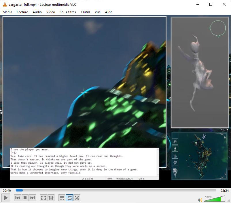 Cette vidéo est conçue comme une capsule portative dont la membrane contient une source, une proto-pensée. C’est l’instant avant l’extension, la soupe primordiale. En son sein, de multiples fragments conversent, convergent et rendent compte de situations frictionnelles. Ces éléments sont des récoltes, des constats, des documentations qui s’articulent alors dans une tentative déjà vaine : créer un enchaînement d’événements. Ici l’accent est mis sur le processus, la systématisation et l’ensemble des réflexes mis en place dans la transformation d’une récolte en matérialisation discursive. Ces choses que j’ai vues, capturées (Catch ‘em all) dans mon téléphone pour en faire quelque chose d’autre, plus tard. Tout cela constitue un "stackage", un empilement empirique d’agents qui ont trouvé dans mon regard des qualités propres à être développées. Cette vidéo interroge de fait le geste de pseudo-documentation qui consiste à accepter une subjectivité dans la capture d’imageries, sans toutefois vouloir en interpréter une forme unique et immuable. La suite qui s’établit chronologiquement est ainsi plus proche d’un éventail de potentialités que d’un unique scénario. En s’écartant d’un objectif de montage qui serait uniquement narratif, summon/cargaster devient un témoignage de l’une des représentations possible dans une infinité d’embranchements.