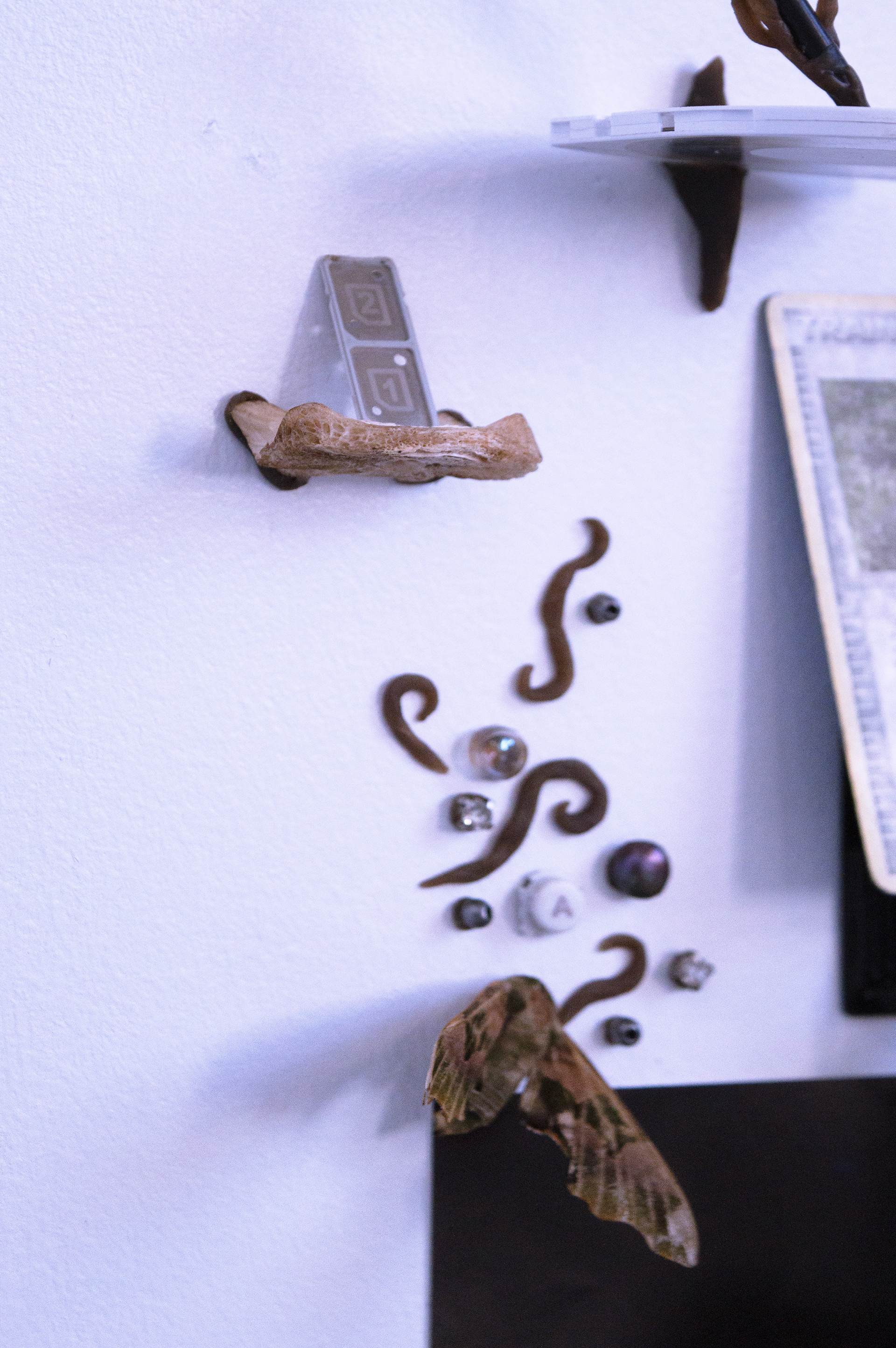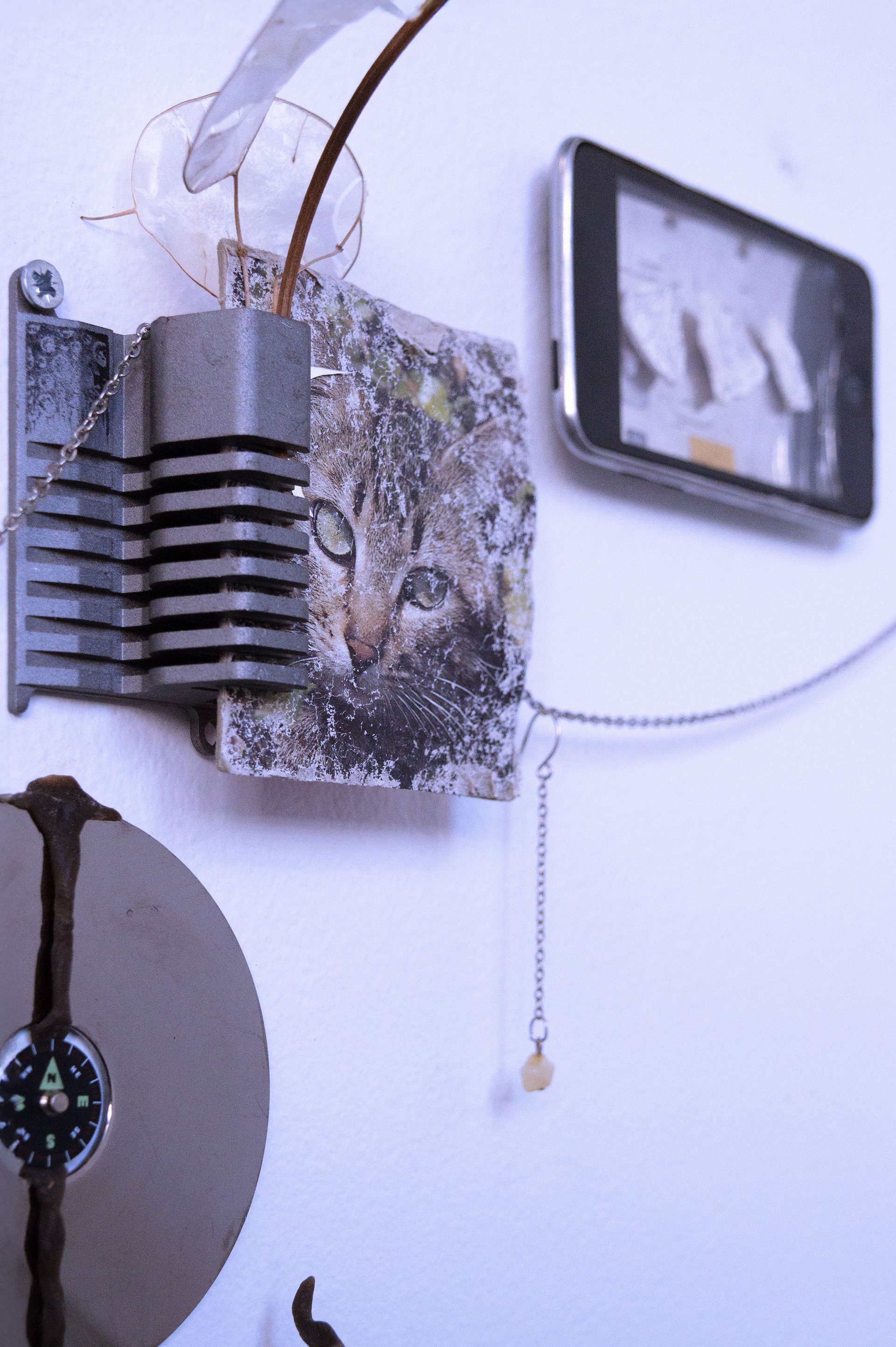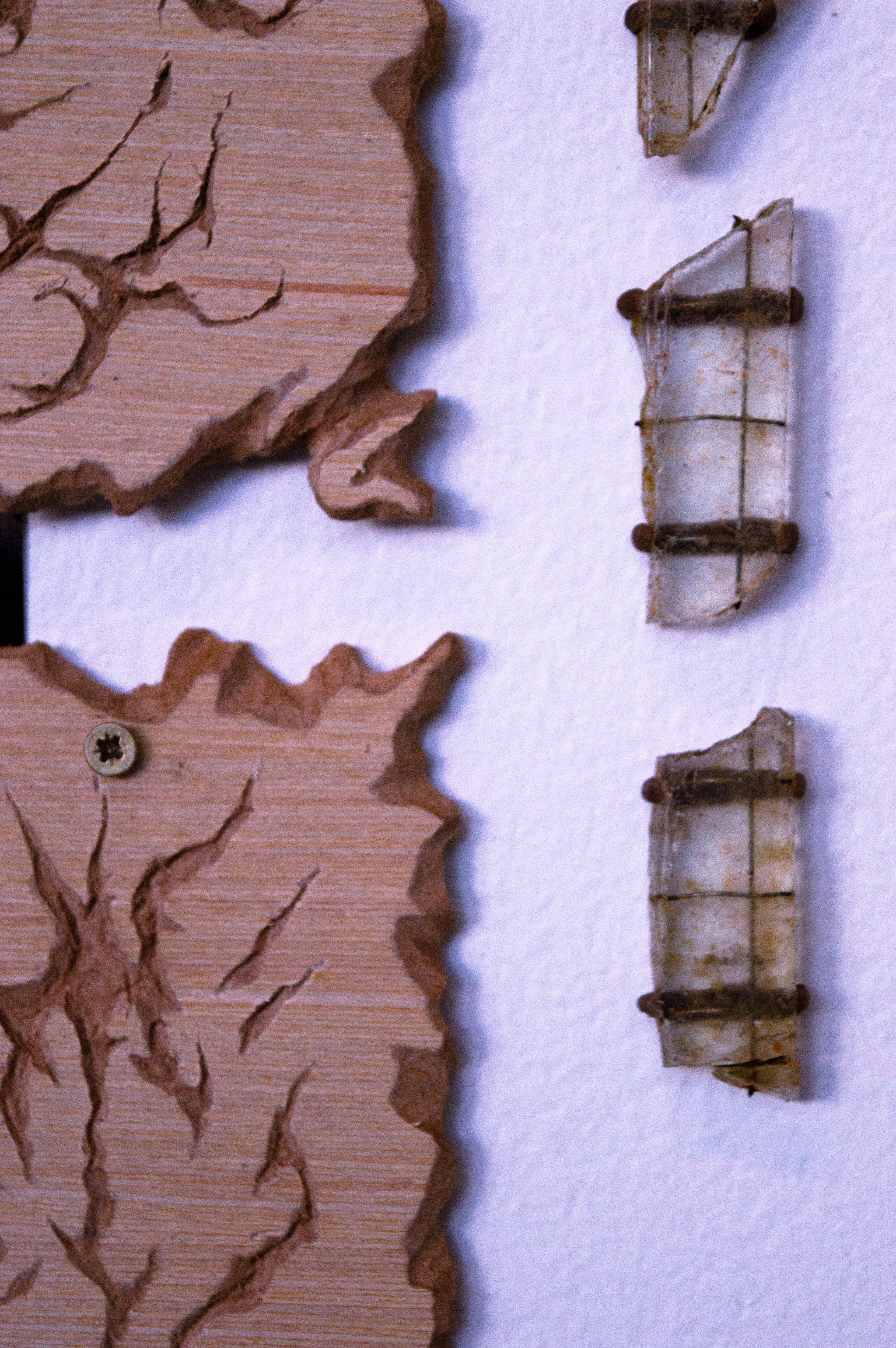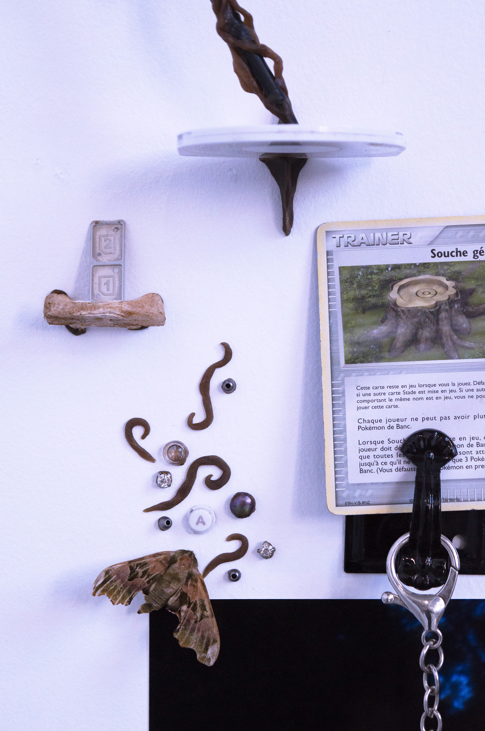 série, assemblages sculpturaux, tirages photographique, dimensions variables, objets glanés, cire d'abeille, dessins, bois sculpté