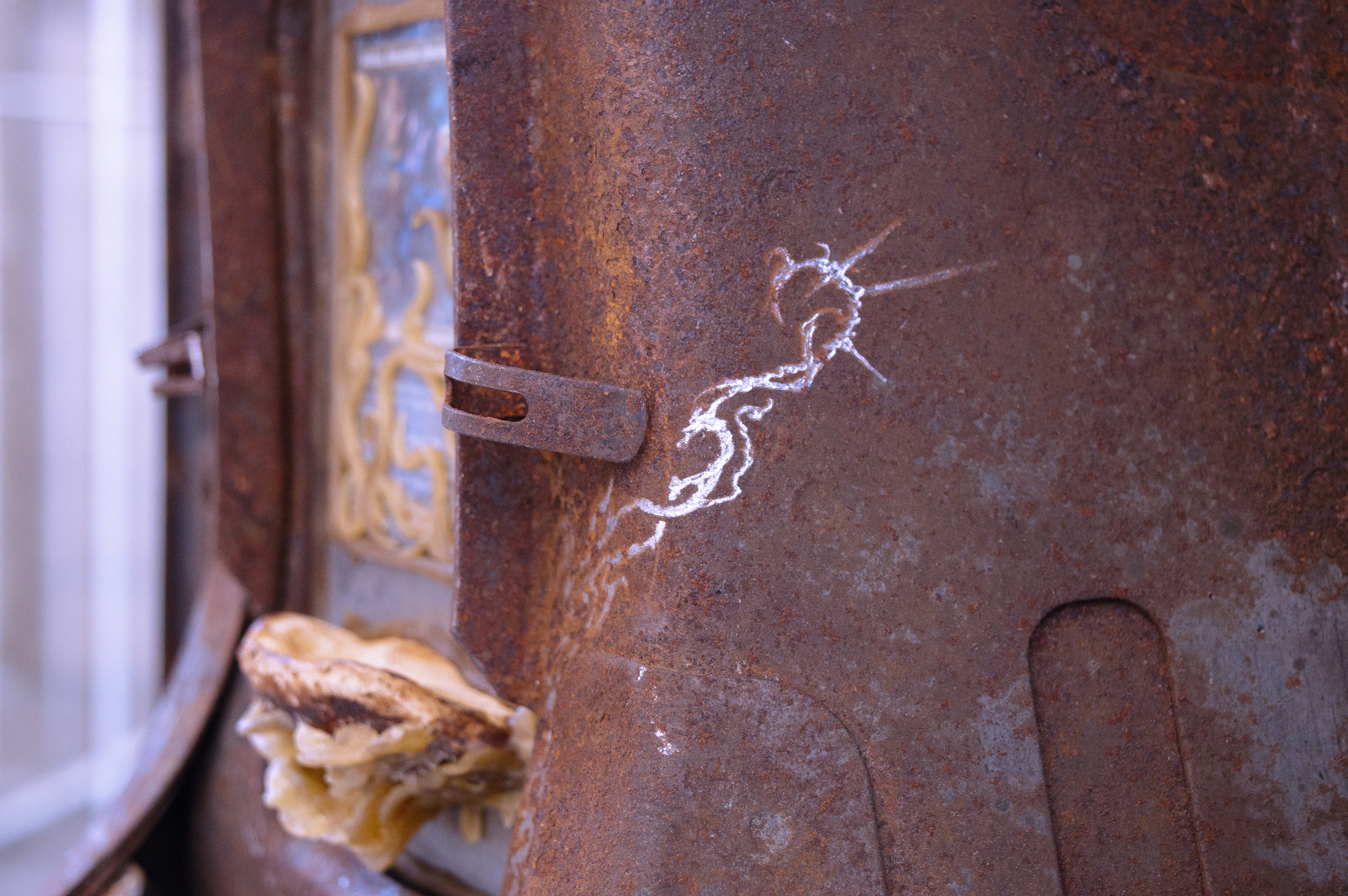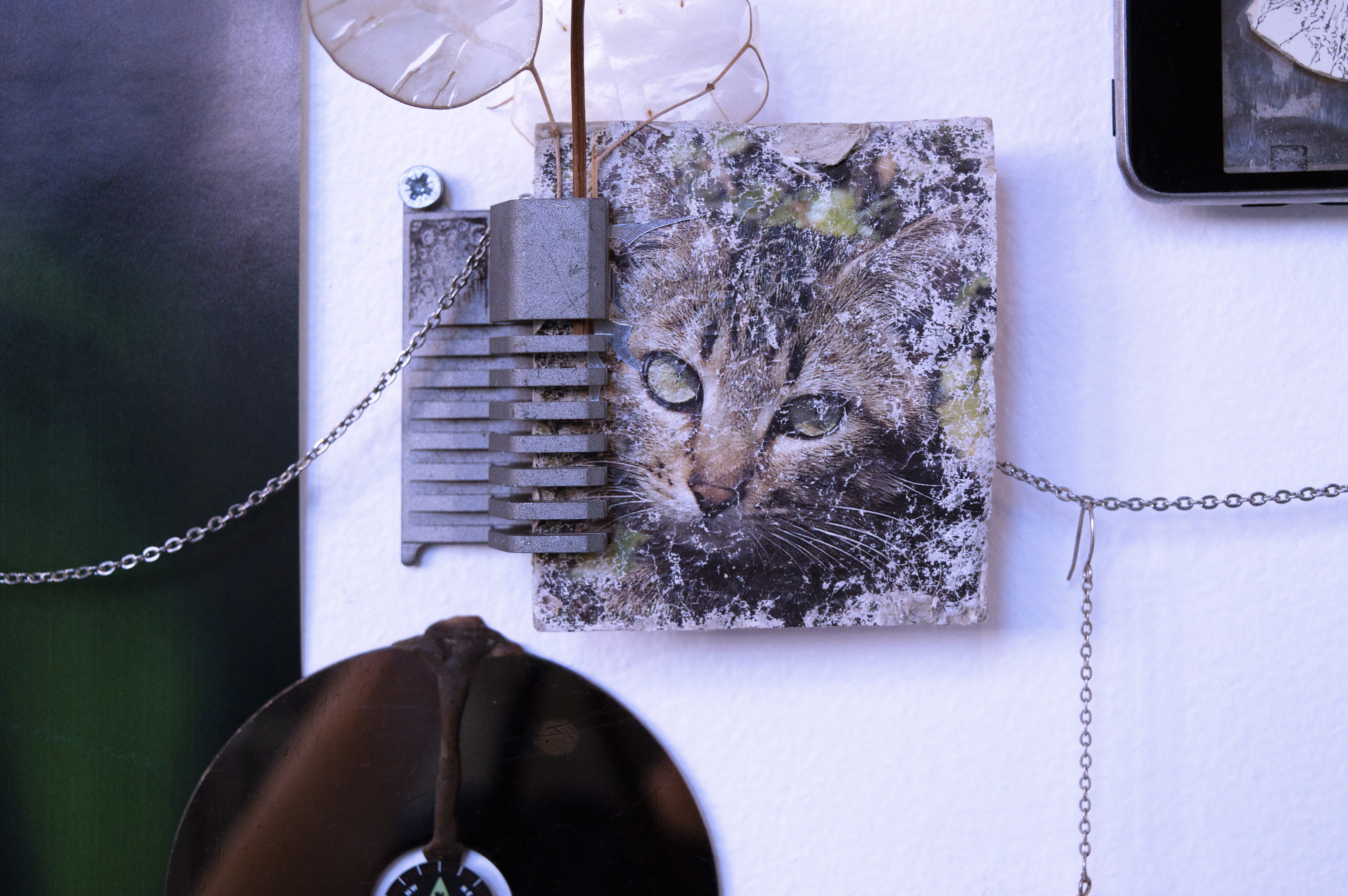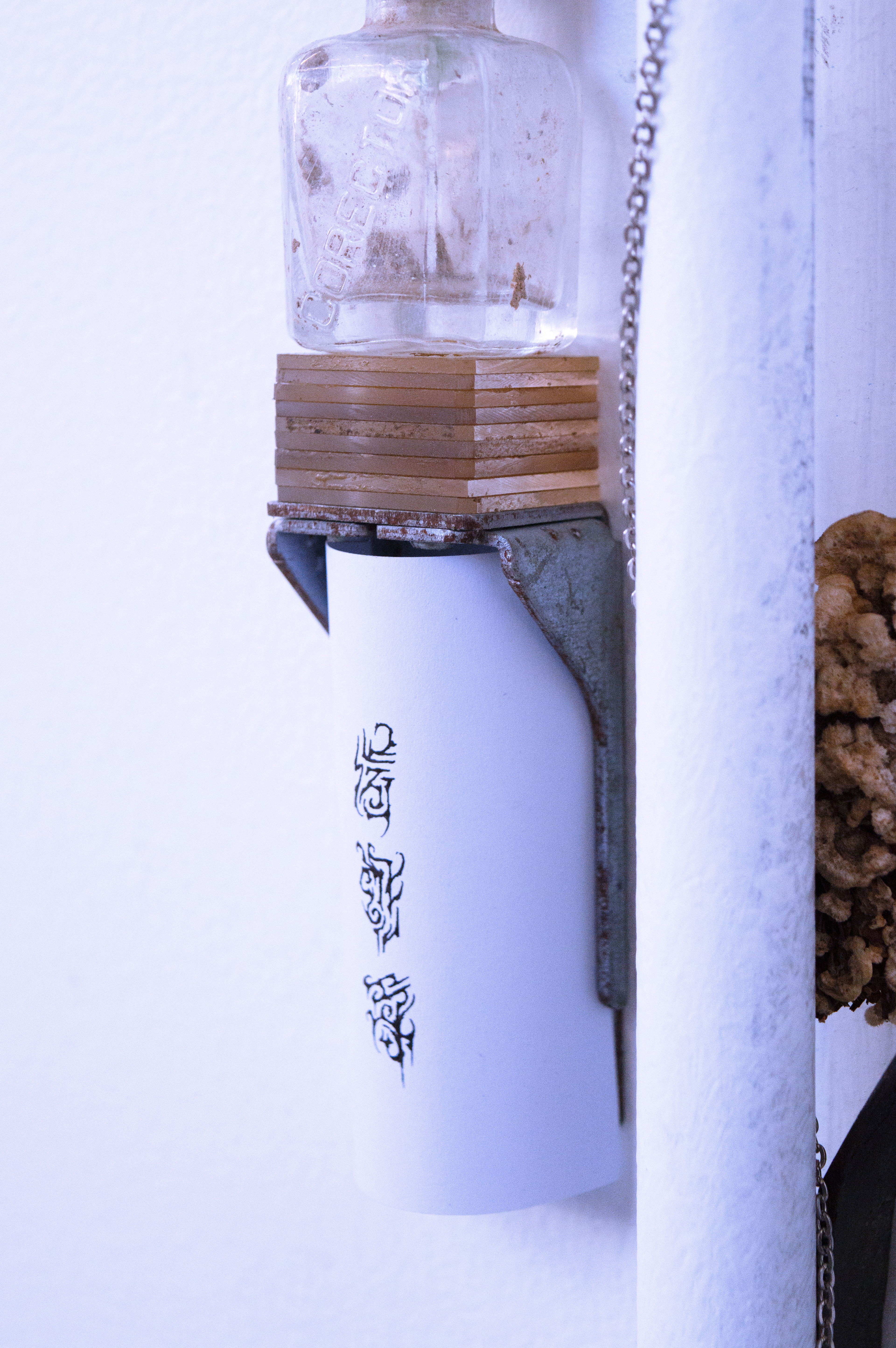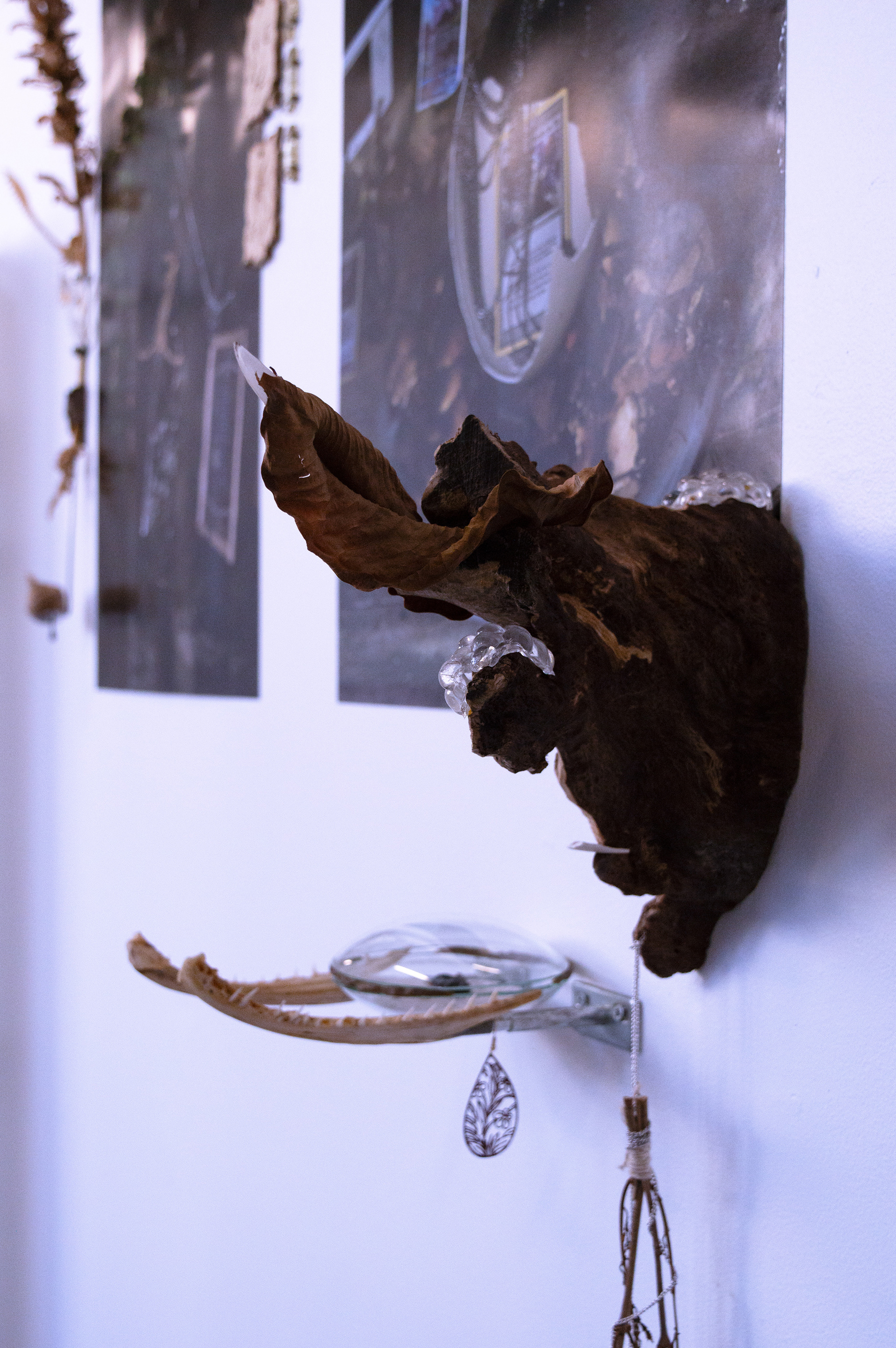 série, assemblages sculpturaux, tirages photographique, dimensions variables, objets glanés, cire d'abeille, dessins, bois sculpté