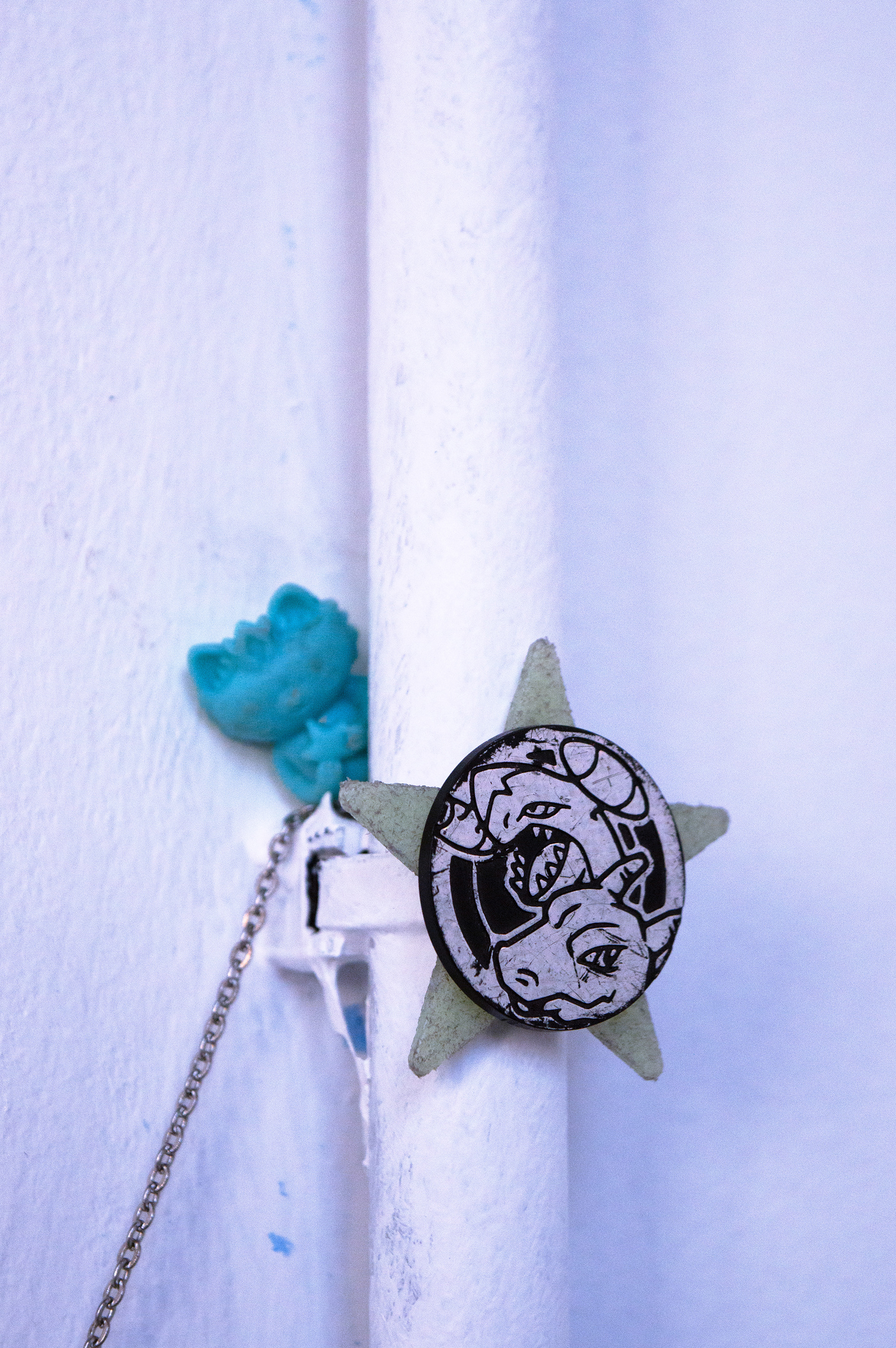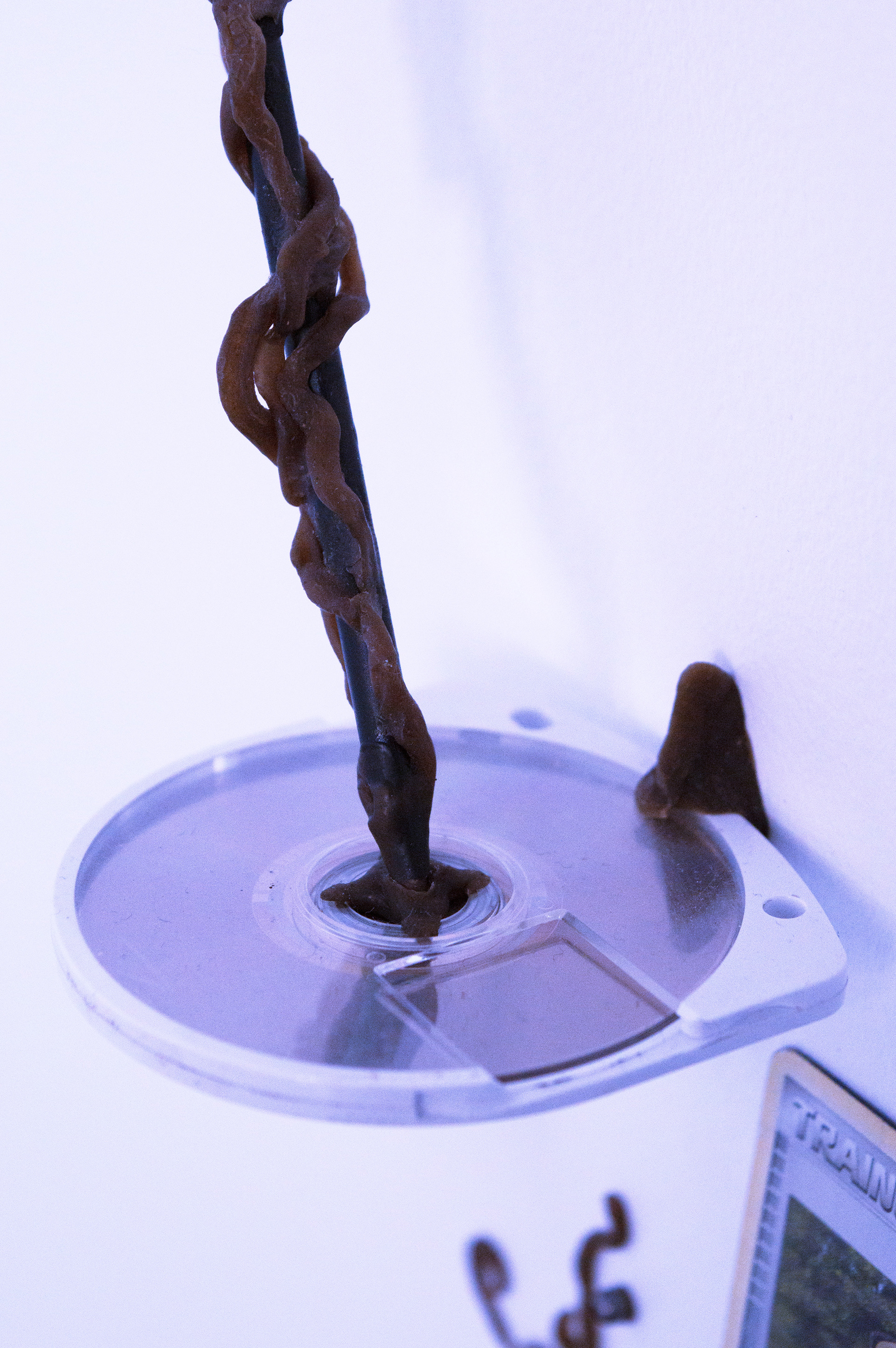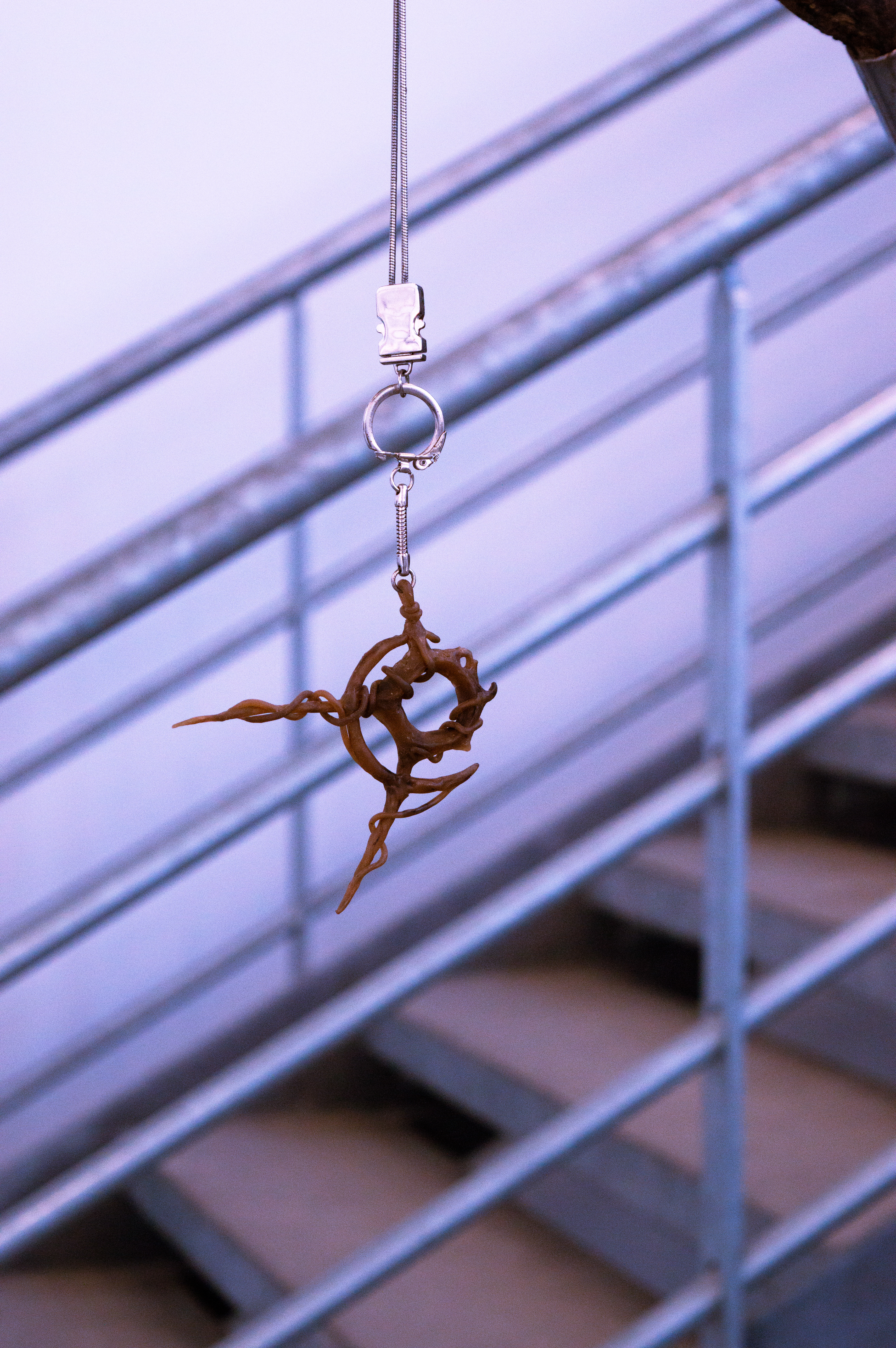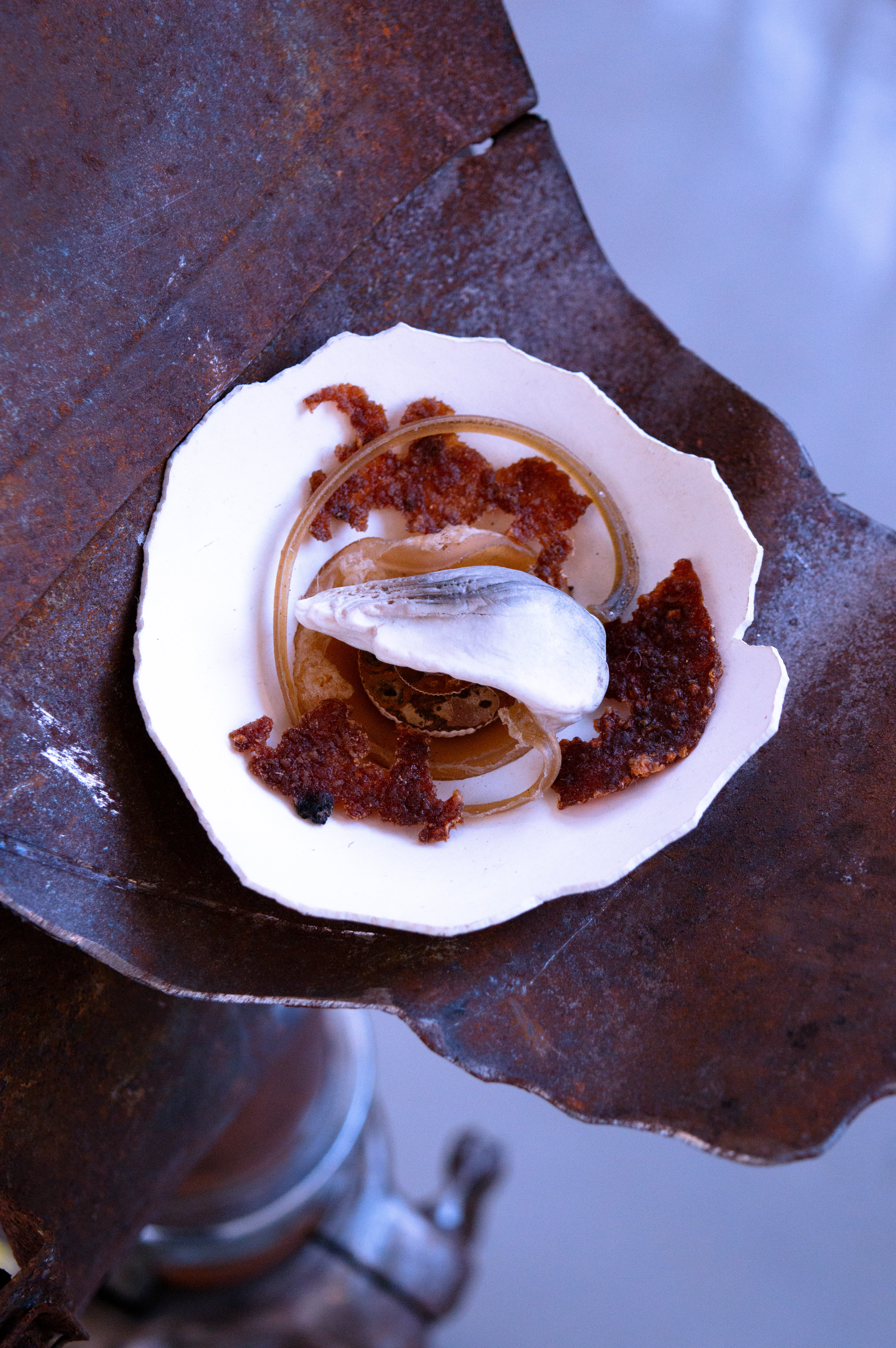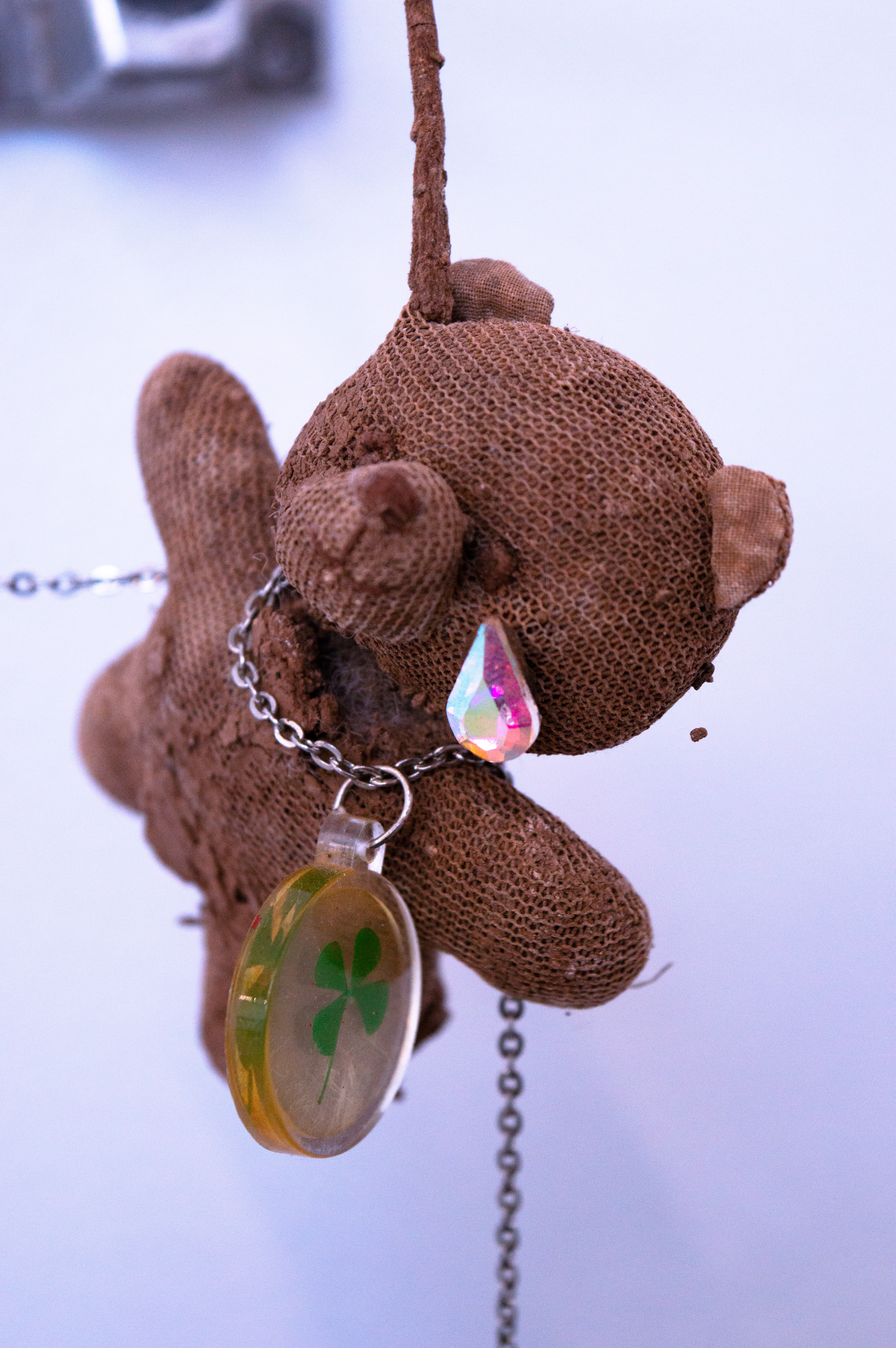 L’installation constitue une adaptation de mon projet de diplôme Bebas Maon après sa sélection par le jury et les curateur.ices de la manifestation Art Émergence. L’accrochage consiste en une multitude de compositions d’objets glanés ou issus de dons qui jaillissent des tirages extraits d’une série de 25 photographies. À leurs côtés, les sculptures de la série Fables se déploient dans l’espace transitoire qui mène du rez-de-chaussé à la mezzanine de la Chaufferie de la Fondation Fiminco. Le choix des photographies sélectionnées s’est fait d’un commun accord avec les curateur.ices Salomé Fau, Temitayo Olalekan et Alexis Hardy. Celles-ci ont ainsi déterminé la nature des fragments qui se retrouveraient dans l’installation. De cette façon, j’ai pu composer dans l’espace sur plusieurs jours et faire dialoguer les matériaux et leurs caractéristiques pour réactiver les contextes révolus des installations visibles dans les photographies. Ainsi une nouvelle lecture s’opère au travers de gestes adaptatifs, de recherches relationnelles dans les fragments, mais aussi des rencontres matériologiques propres à l’espace et son ambiance.