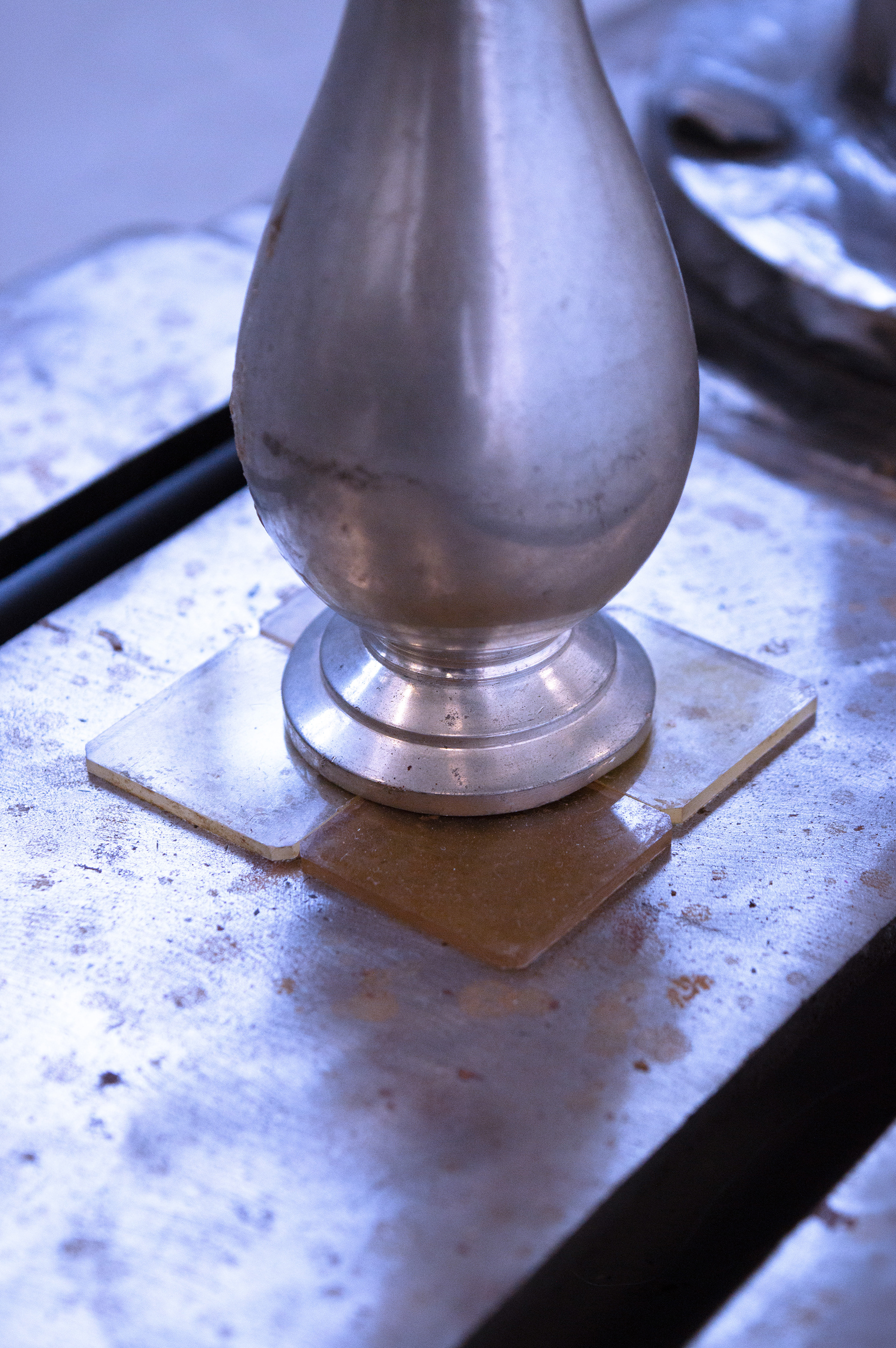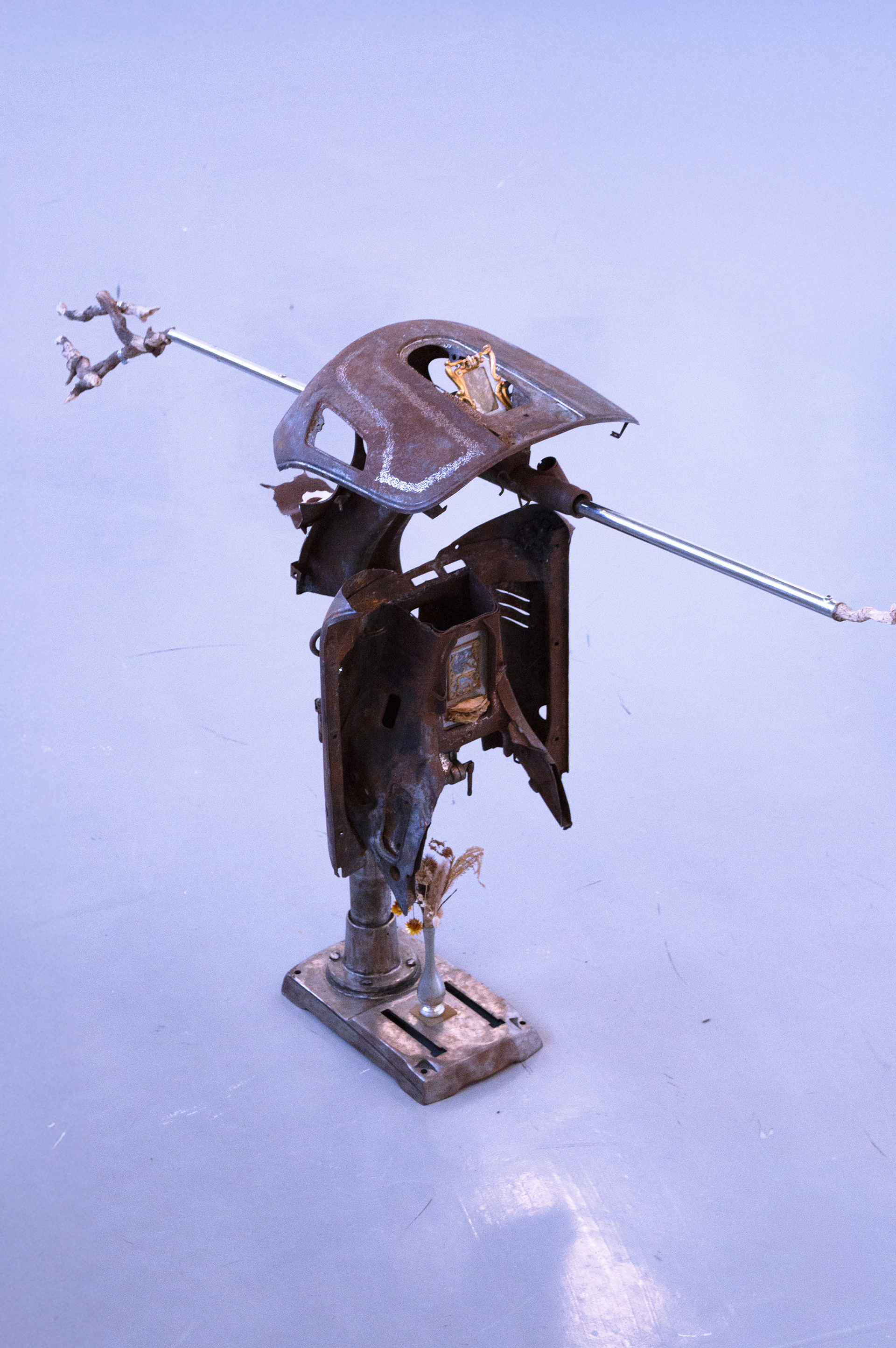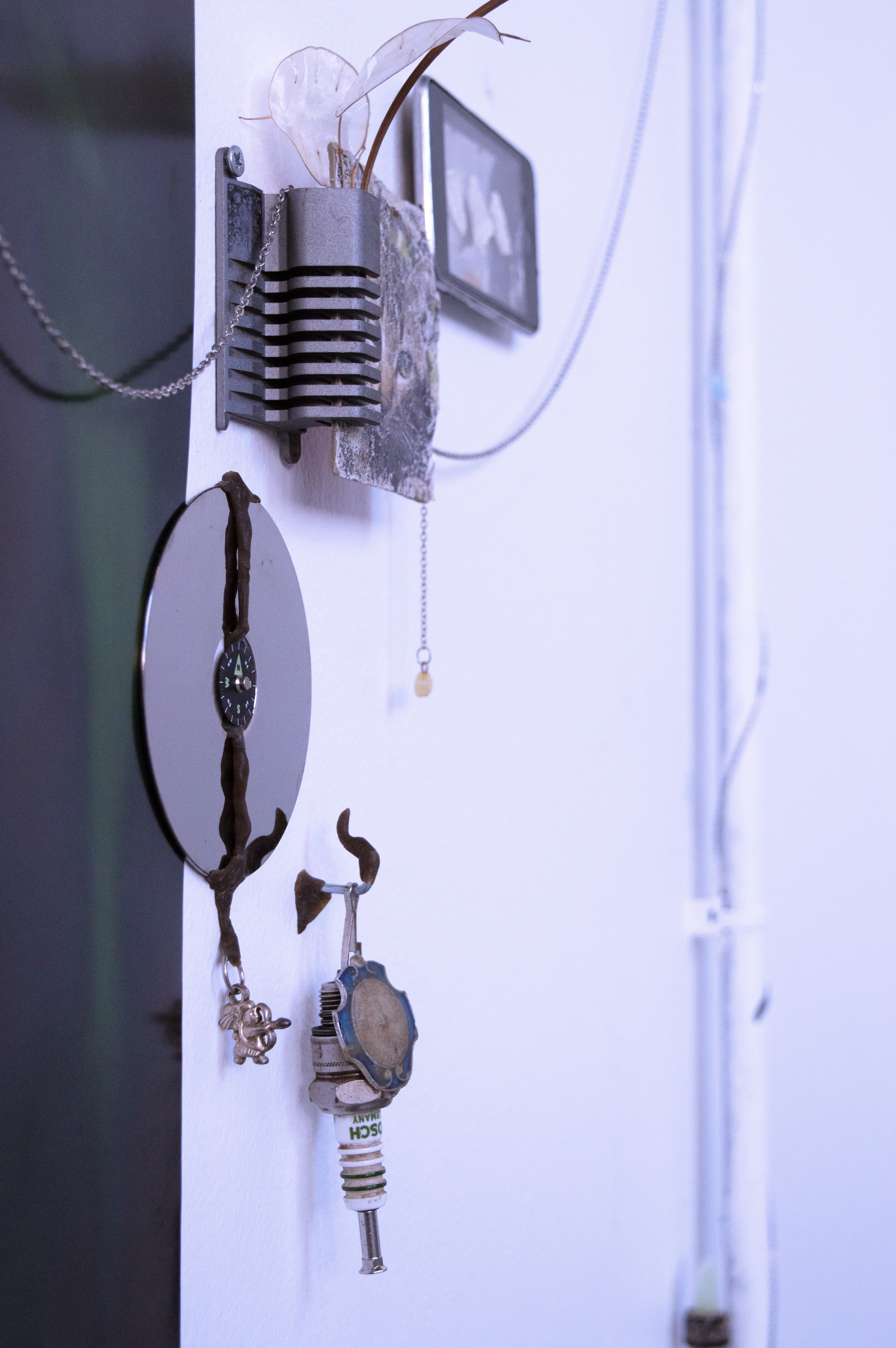 série(4), assemblages sculpturaux, dimensions variables, gravure sur métal et bois, objets glanés, cire d'abeille