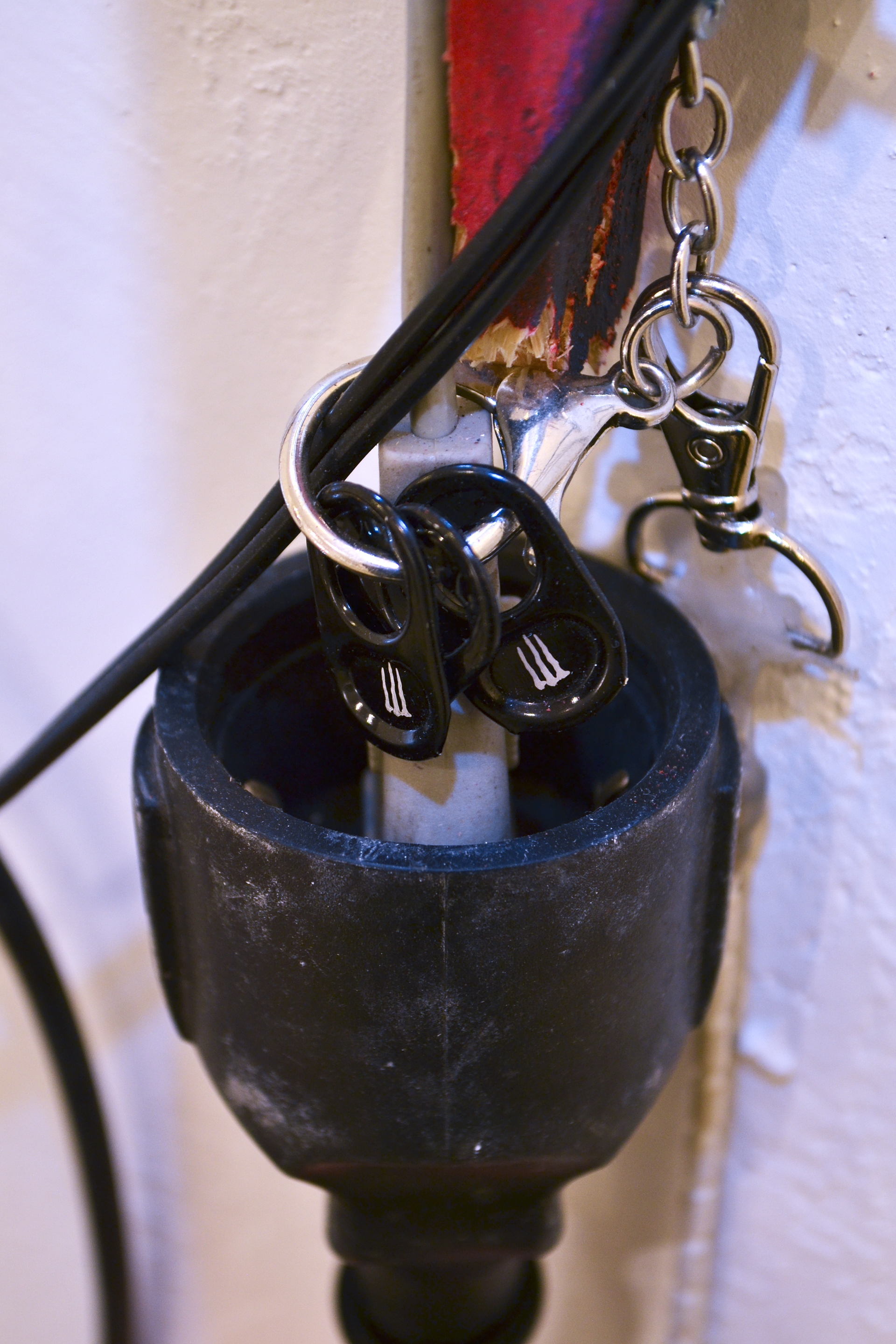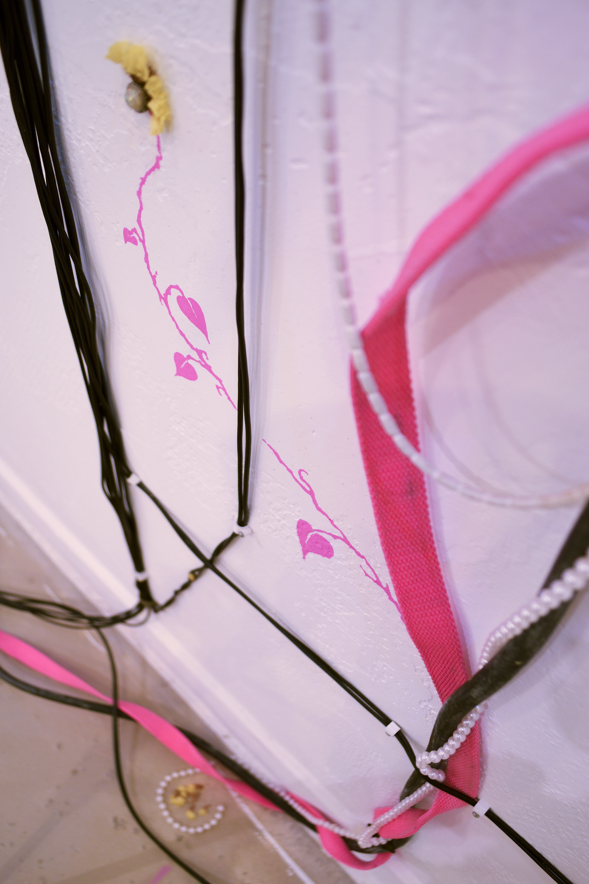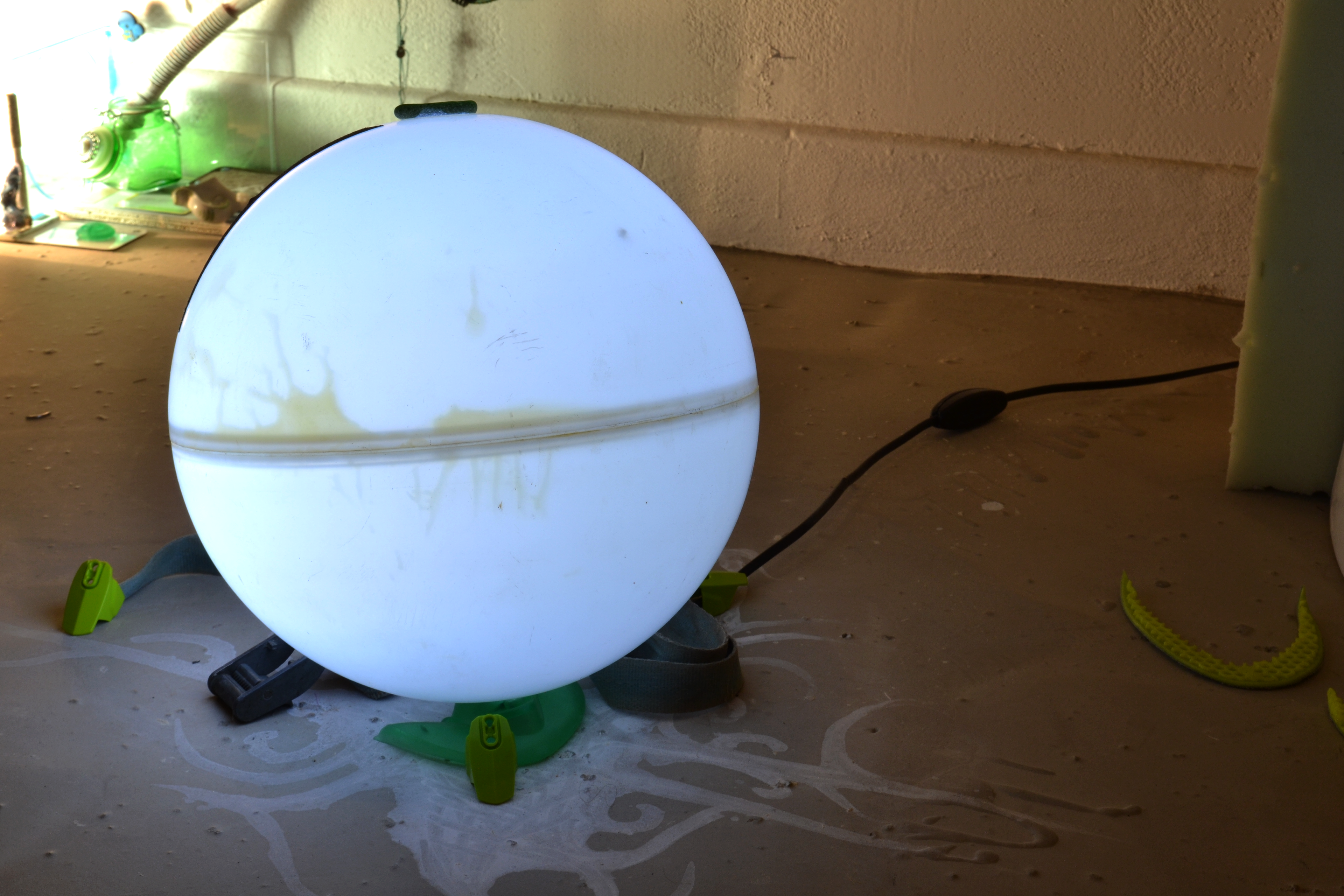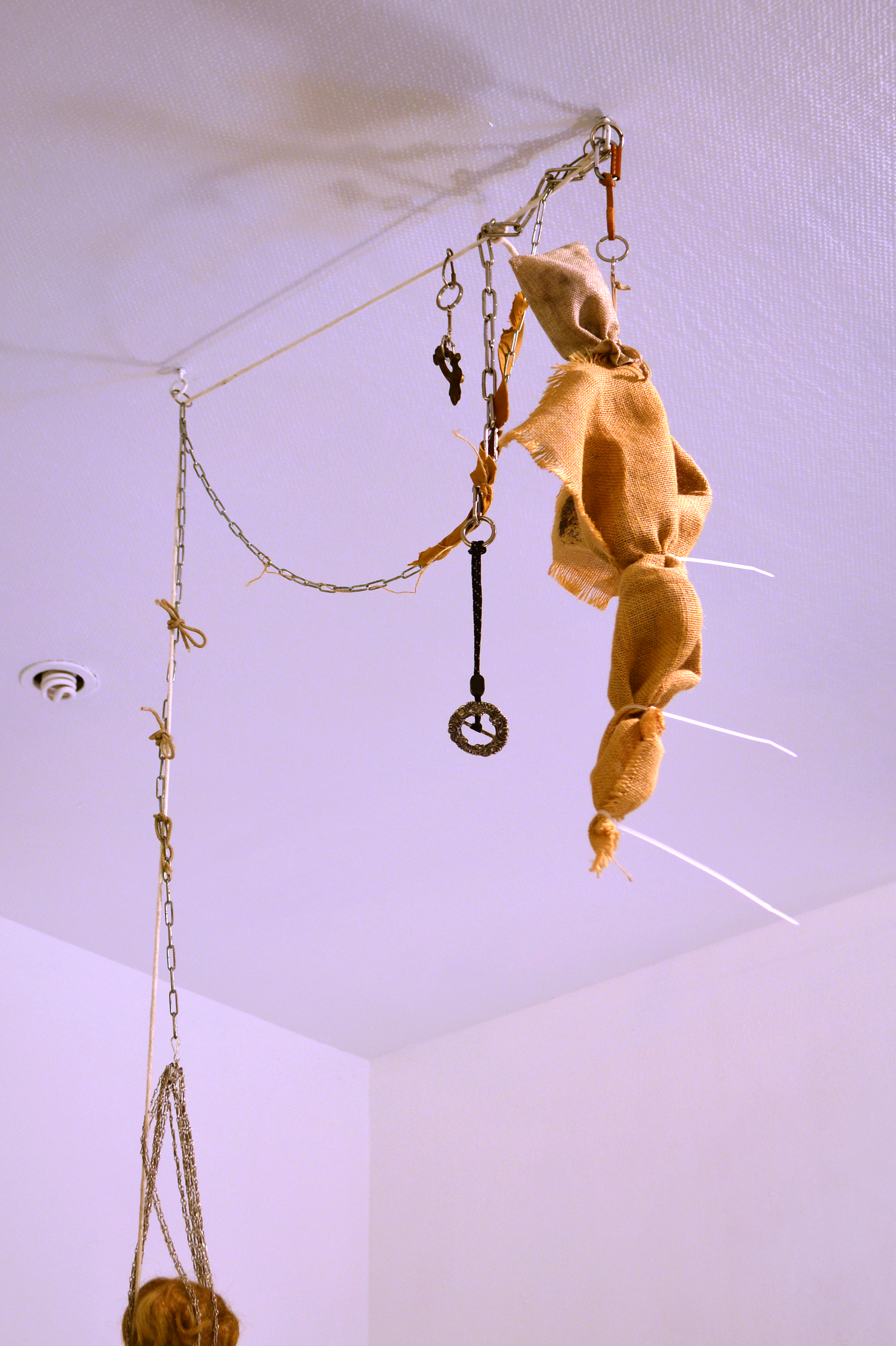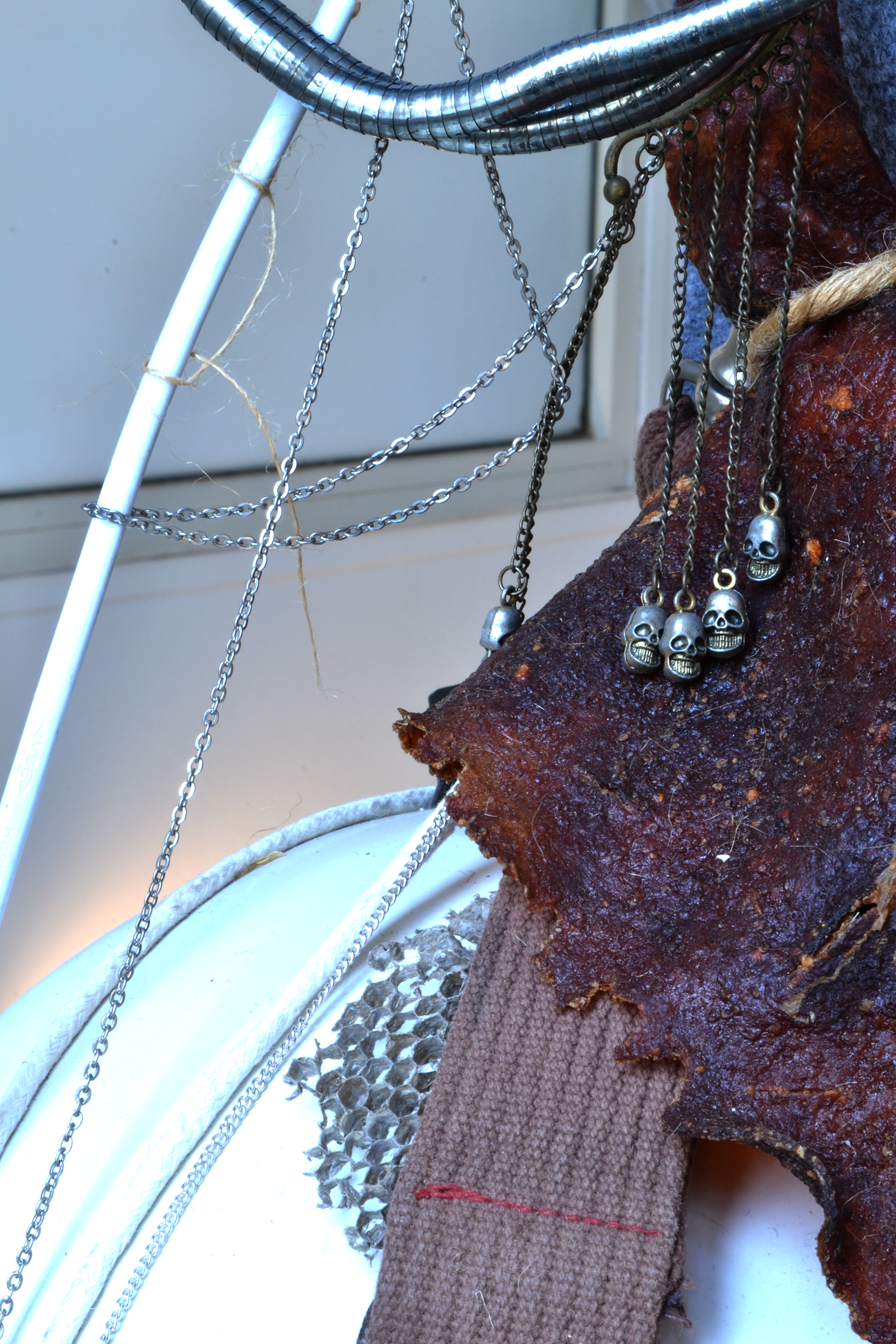 assemblage sculptural, dimensions variables, objets glanés, matériel électronique récupéré, peinture acrylique, dessins