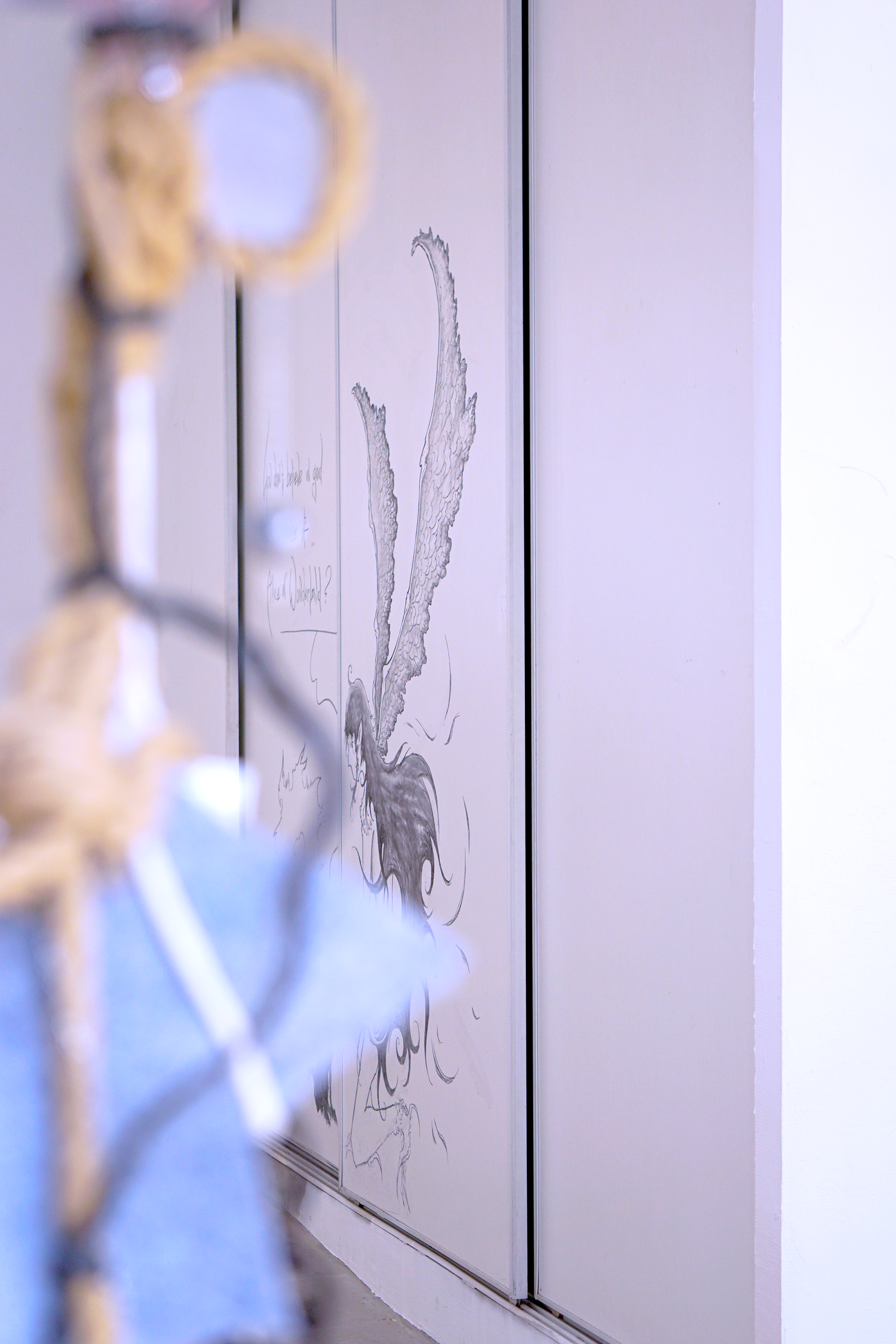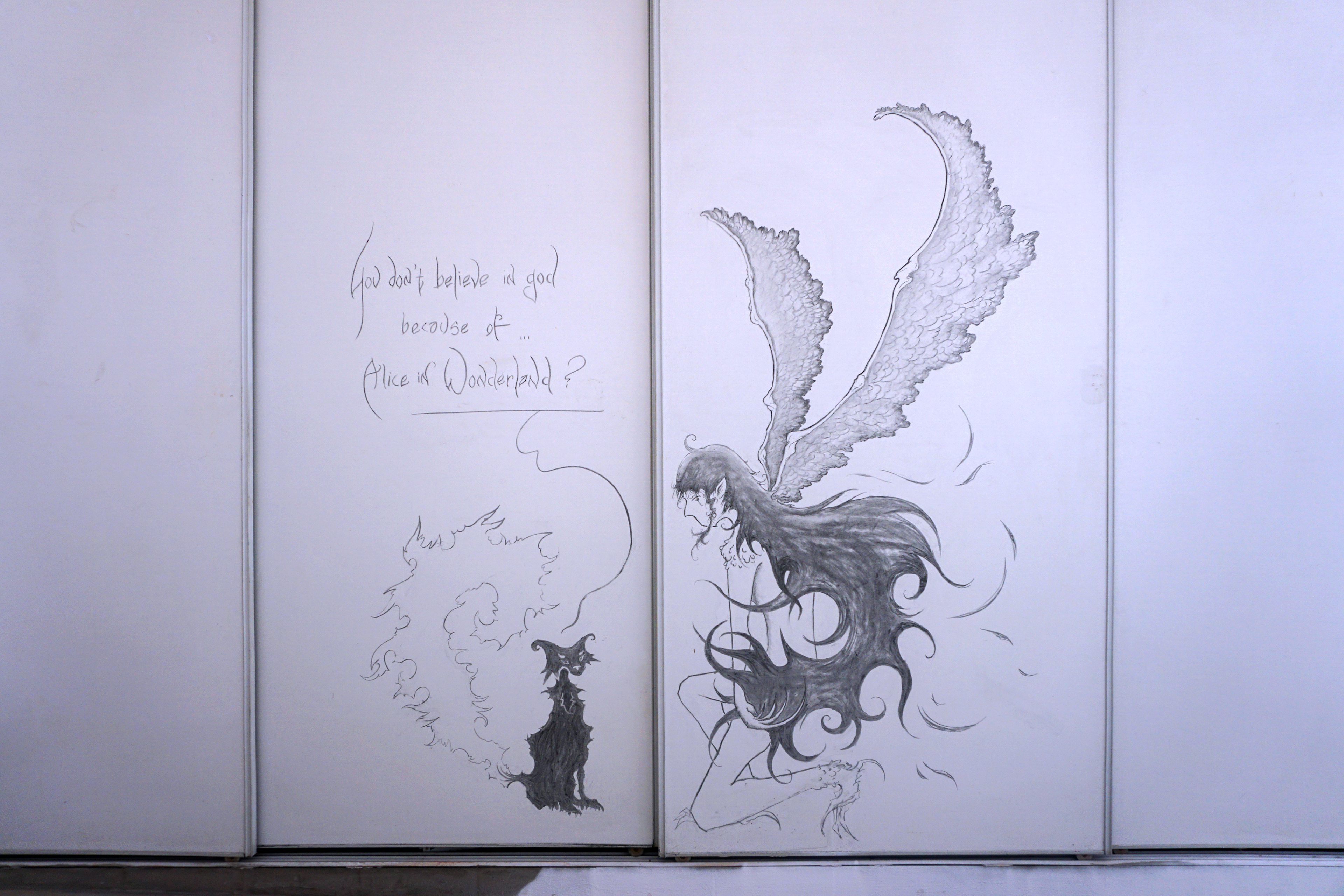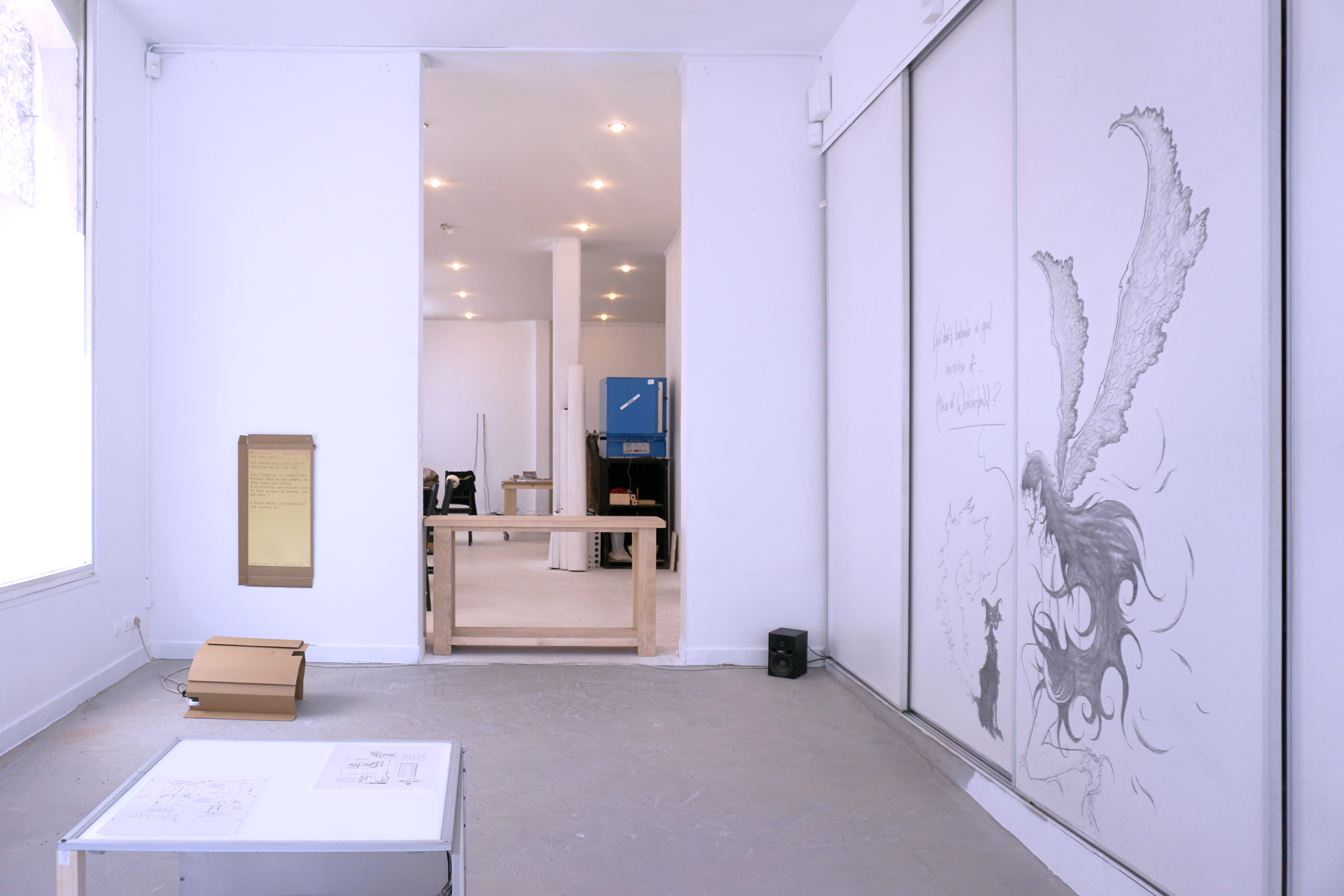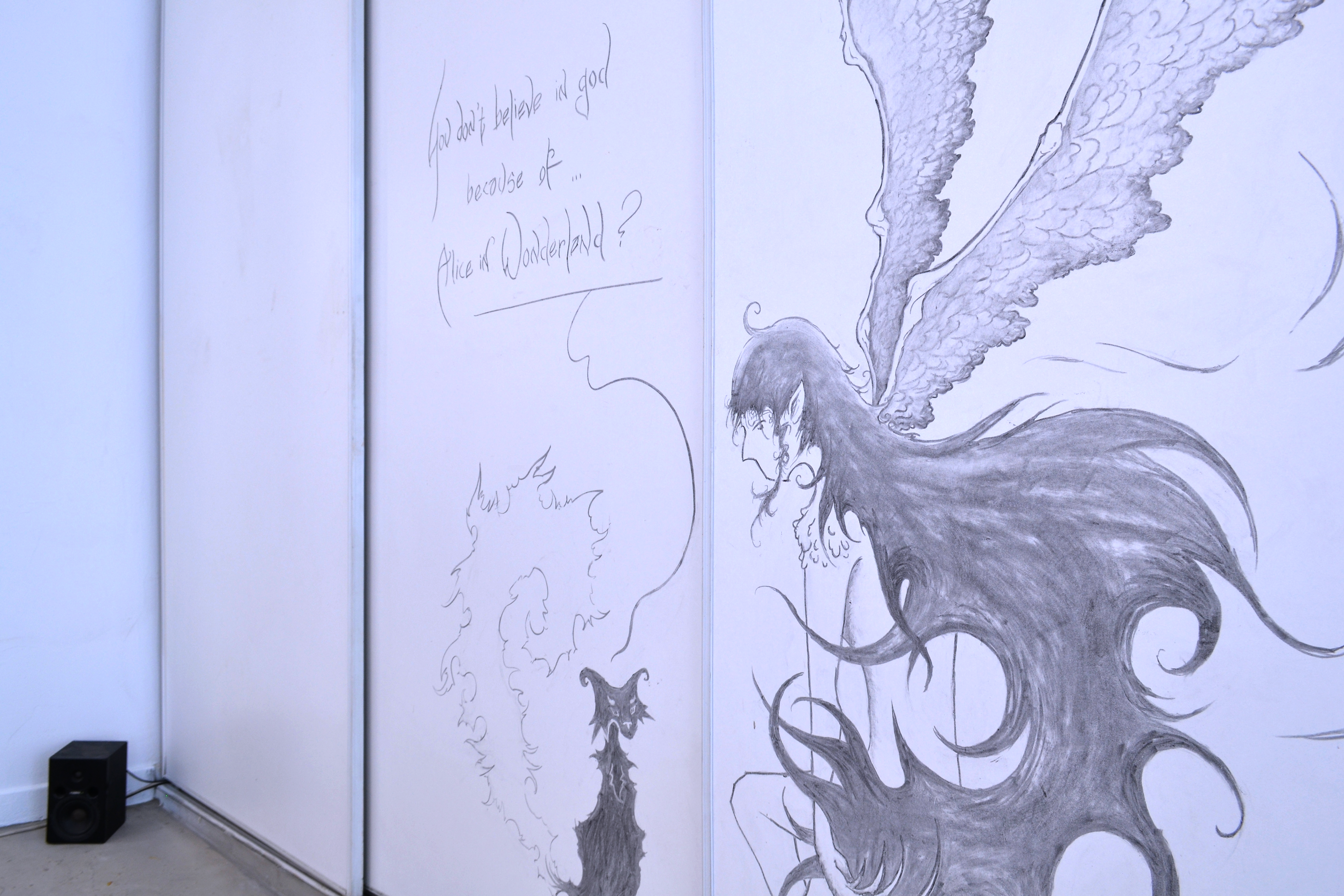 dessin au fusain, texte, dimensions variables