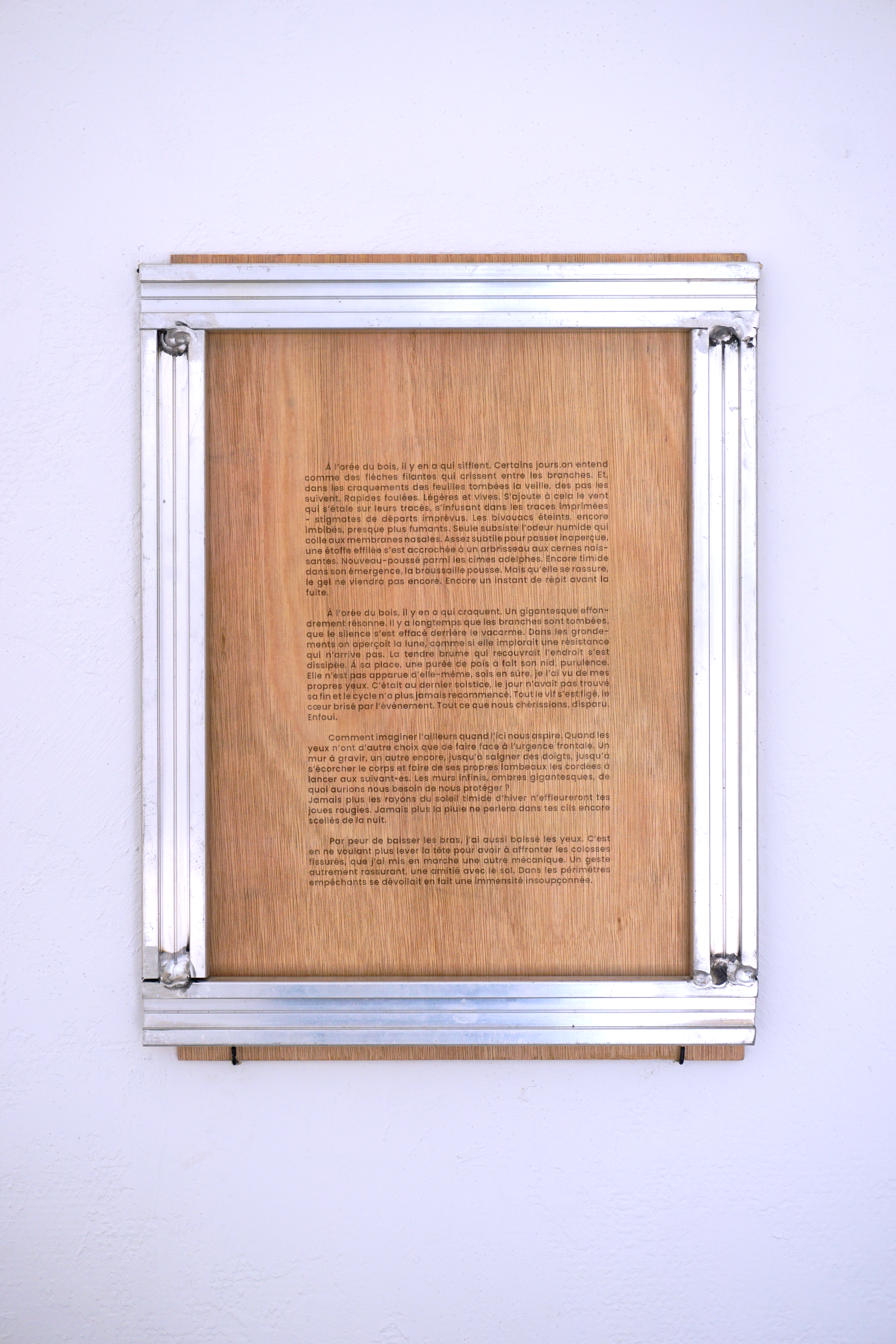sculpture, 55x65x10 cm, texte gravé sur bois