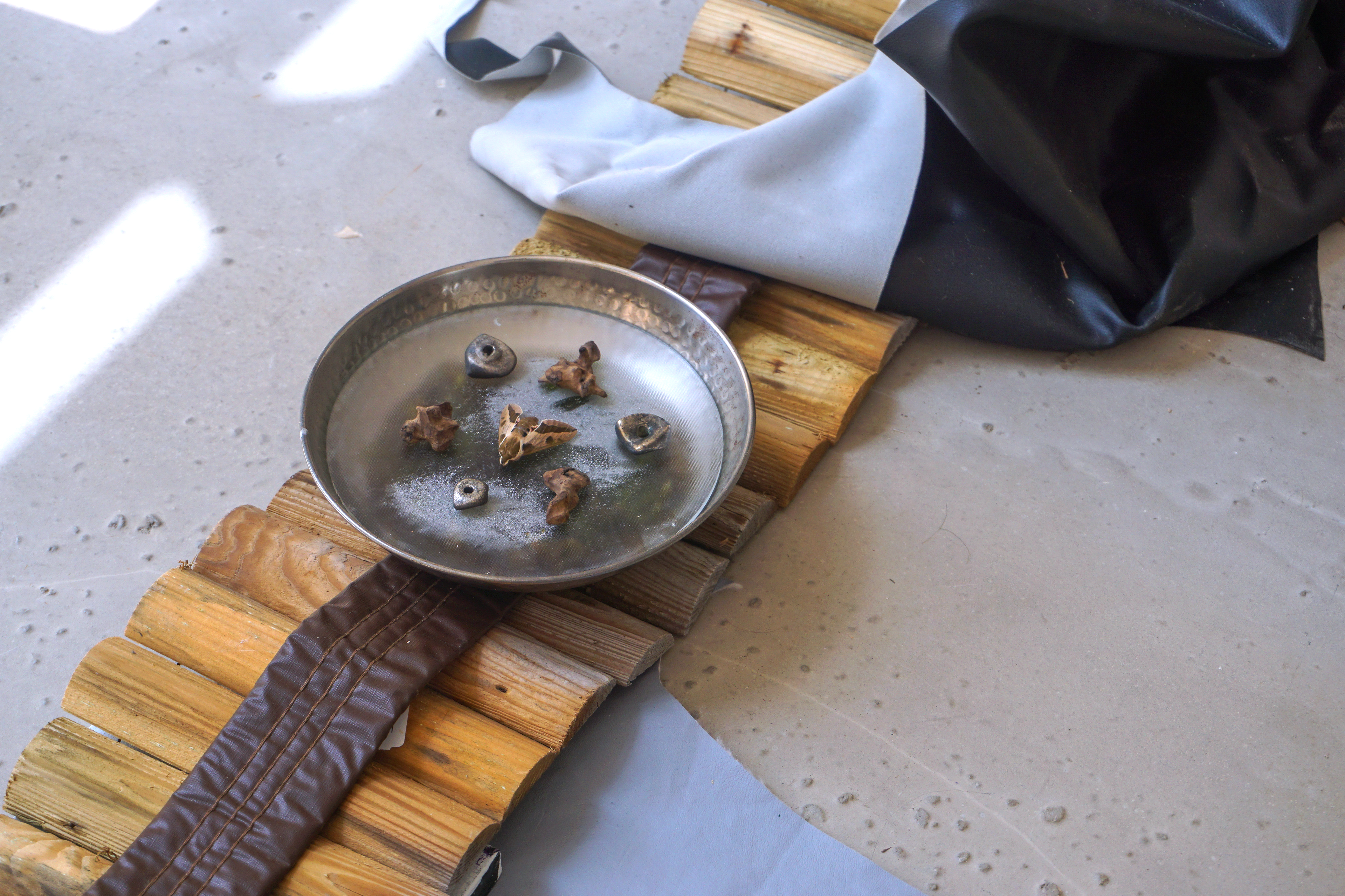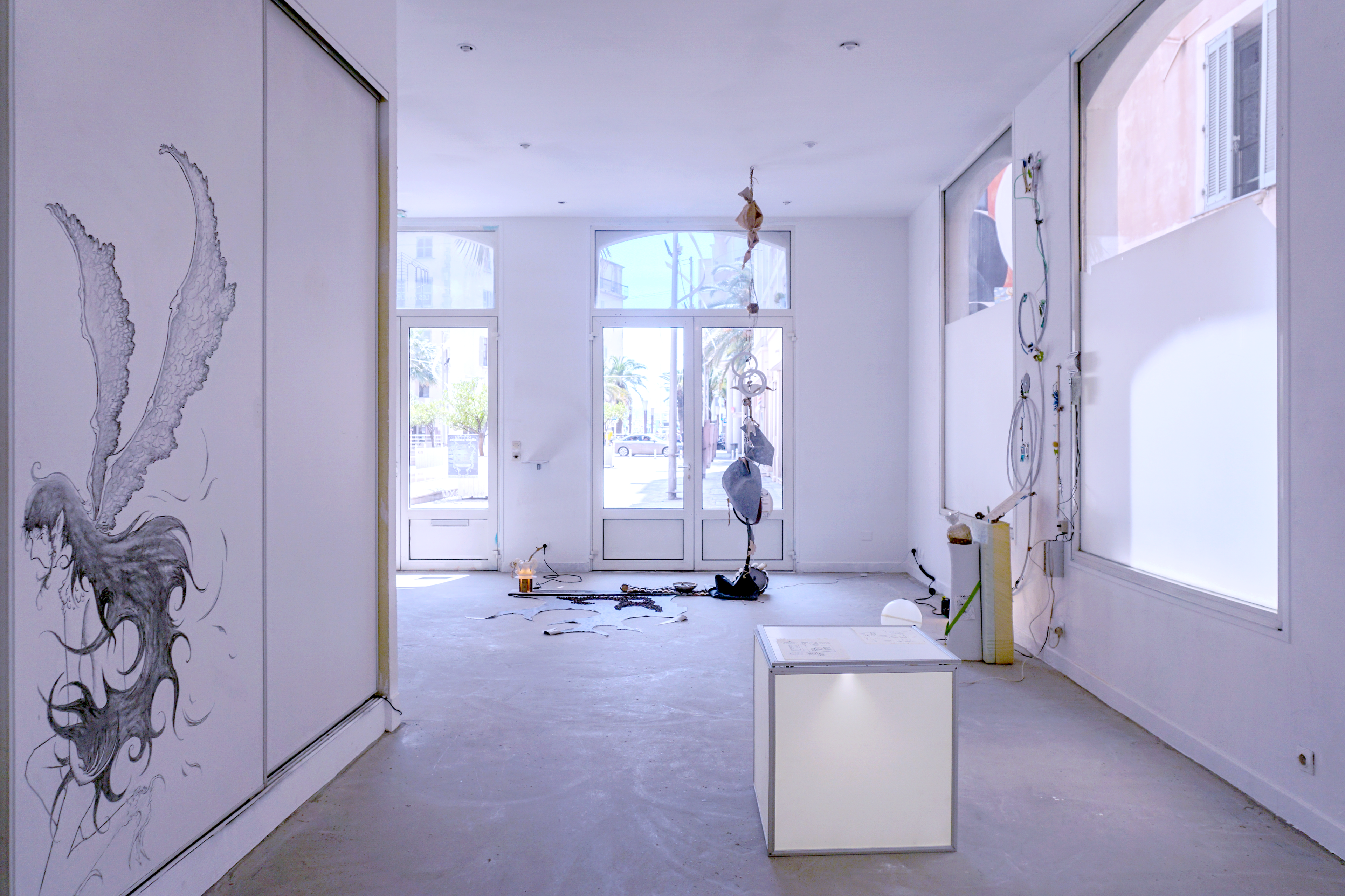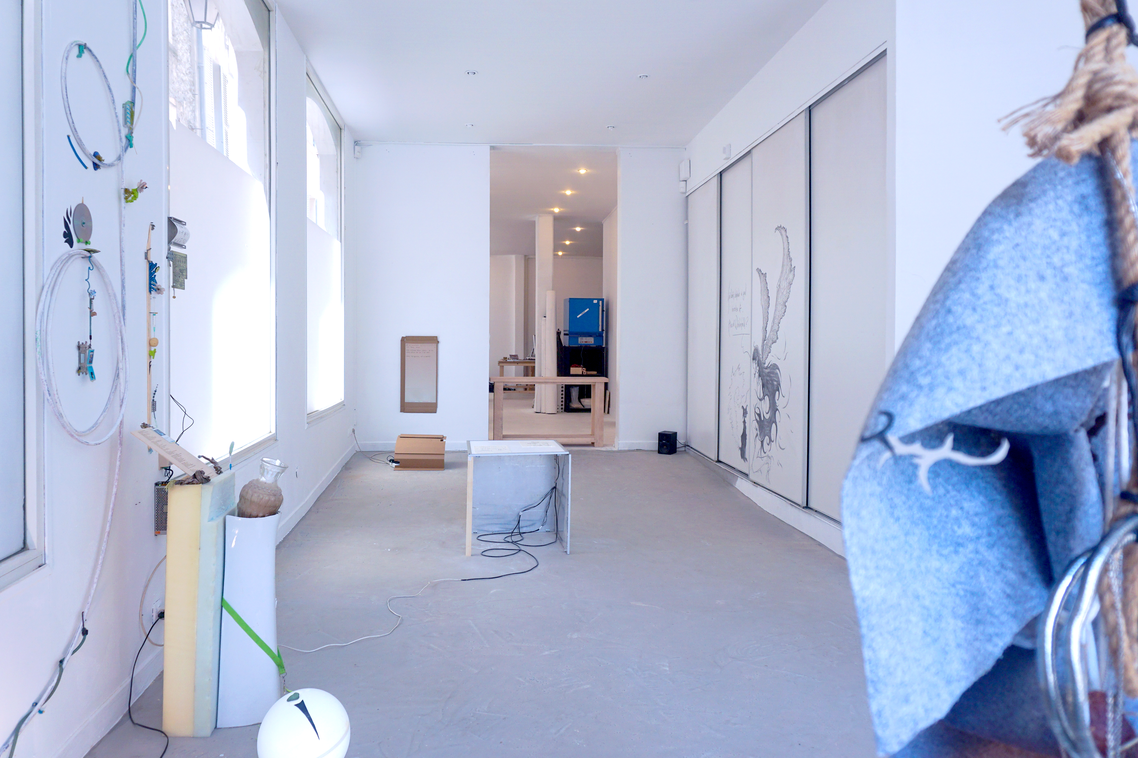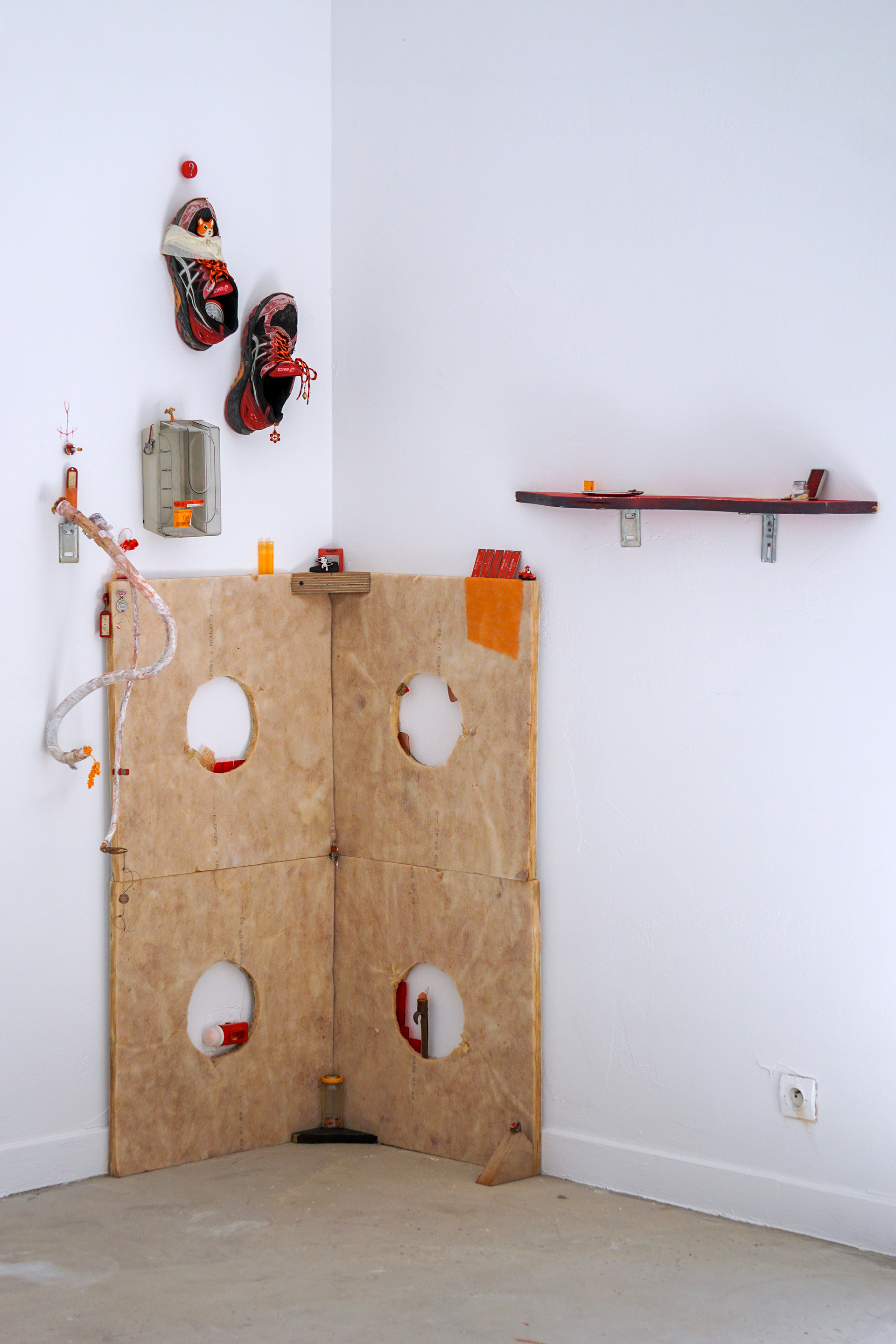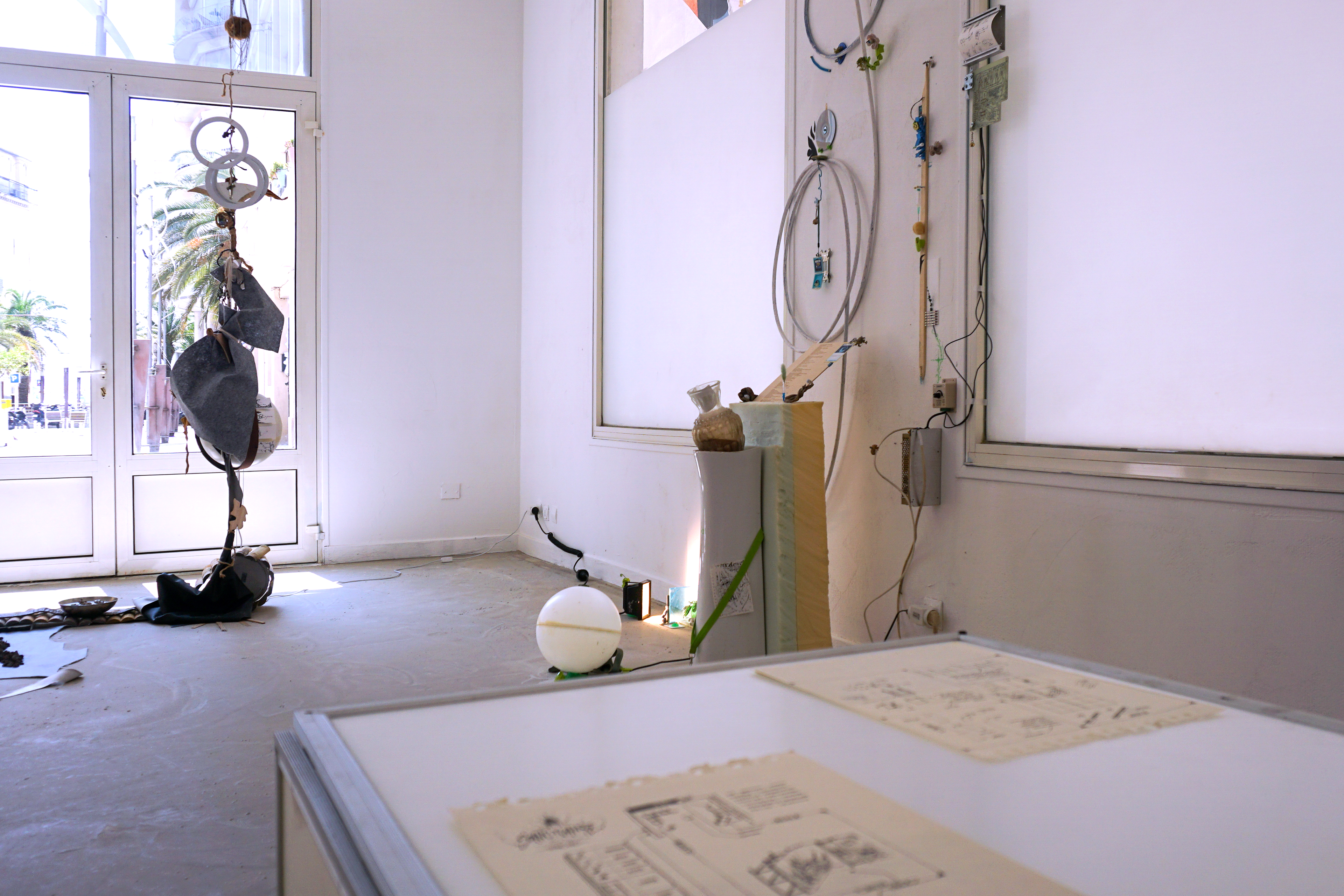 Durant ma période de résidence au sein du metaxu, j’ai opéré des sélections de matériaux que j’ai utilisé comme les colonnes vertébrales des compositions qui en bourgeonnent. Sur ces squelettes s’amoncelle une multitude de récoltes et de souvenirs issus en quasi totalité de mes années d’études à Toulon. De cette façon, les fragments nouvellement décelés activent une dynamique particulière au contexte de la résidence. Des chutes de contreplaqués ayant servi à d’anciens événements organisés par le metaxu, des rebuts que j’ai trouvé durant la rénovation de l’espace d’ateliers, des comportements observés chez les gens qui gravitent autour de la place Raimu. Tout cela constitue un archivage intriqué qui surligne une quantité de gestes infimes, de documentations délicates et de dialogues avec l’autour. Cette installation a pour vocation d’apporter une lecture intime, comme des témoignages subjectifs donnant une voix aux oublié.es. Dans ces archipels hétéroclites, le regard passe de rapport d’échelles en rapports d’échelles. Parfois, ce sera la lecture d’ensemble qui provoque quelque chose en nous, d’autres fois, ce sera le détail. Dans ce périmètre à l’allure d’un liquide sémiotique, se confrontent et dialoguent des points de vus, des ressentis, des humeurs, des observations, des récoltes, des gestes d'agencements, des parenthèses mémorielles, des cristaux nostalgiques, des curieuses balises et des sillons du sensible.
