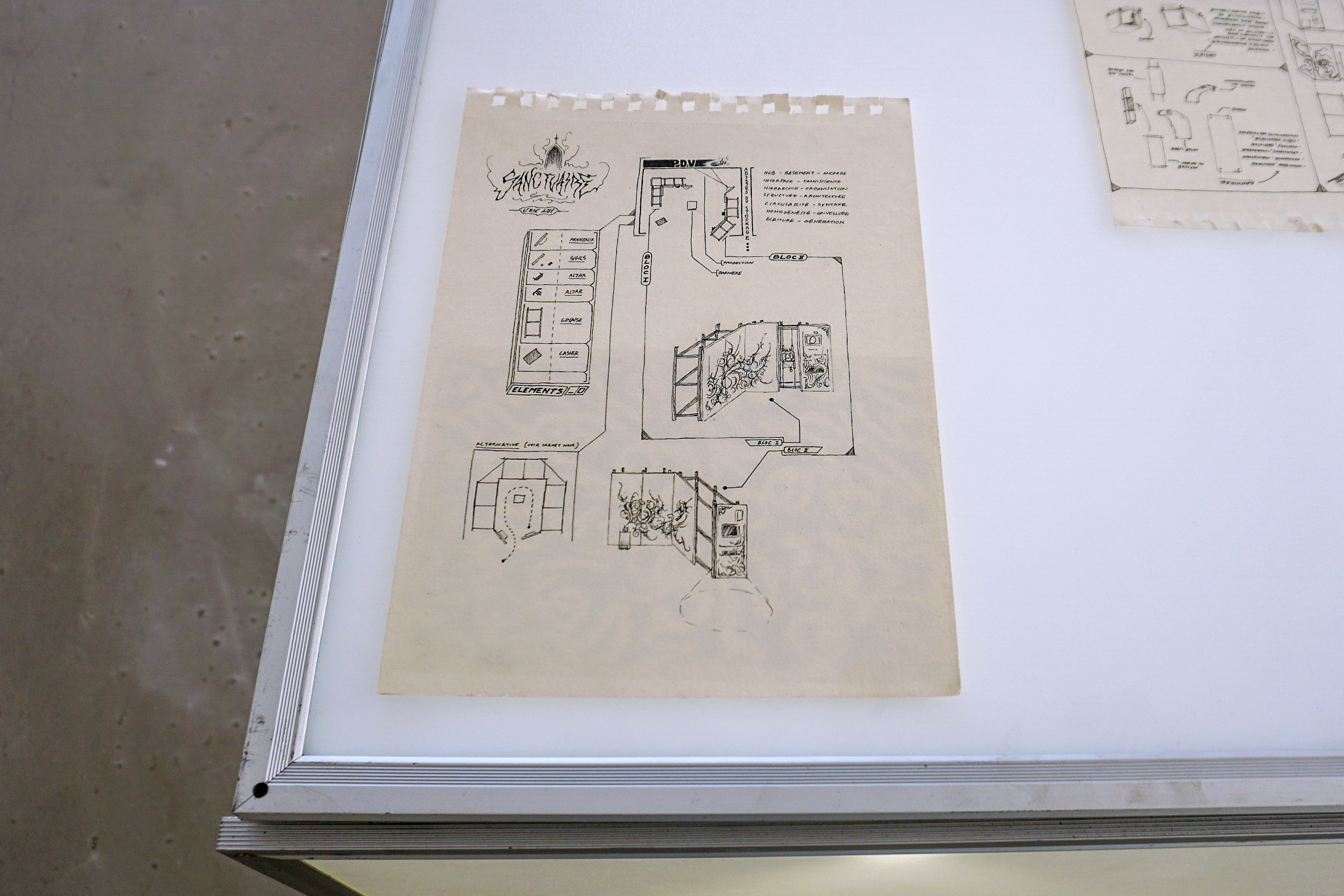 assemblage sculptural, dimensions variables, matériel électronique récupéré, objets glanés, dessins